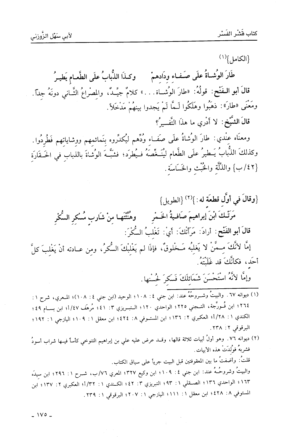 (طارَ الوُشاةُ على صَفاءِ ودادِهمْ ... وكذا الذُّبابُ على الطَّعامِ يطيرُ)