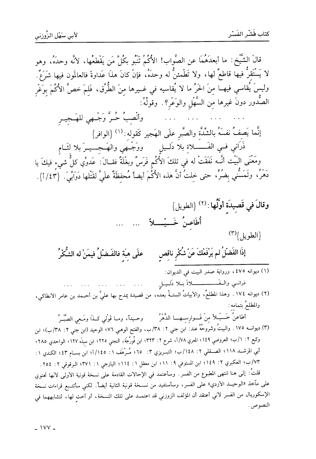 قال الشيخ: ما أبعدهما عن الصواب، الأكم تنبو بكل من يقطعها، لأنه وحده، وهو لا يستقر فيها قاطع لها، ولا تطمئن له وحده، فإن كان هذا عداوة، فالعالمون فيها شرعٌ. وليس يُقاسي فيها من الحر ما يُقاسيه في غيرها من الطُّرق، فلِم خص الأكم بوغر الصدور دون غيرها من السهل والوعر؟ وقوله: