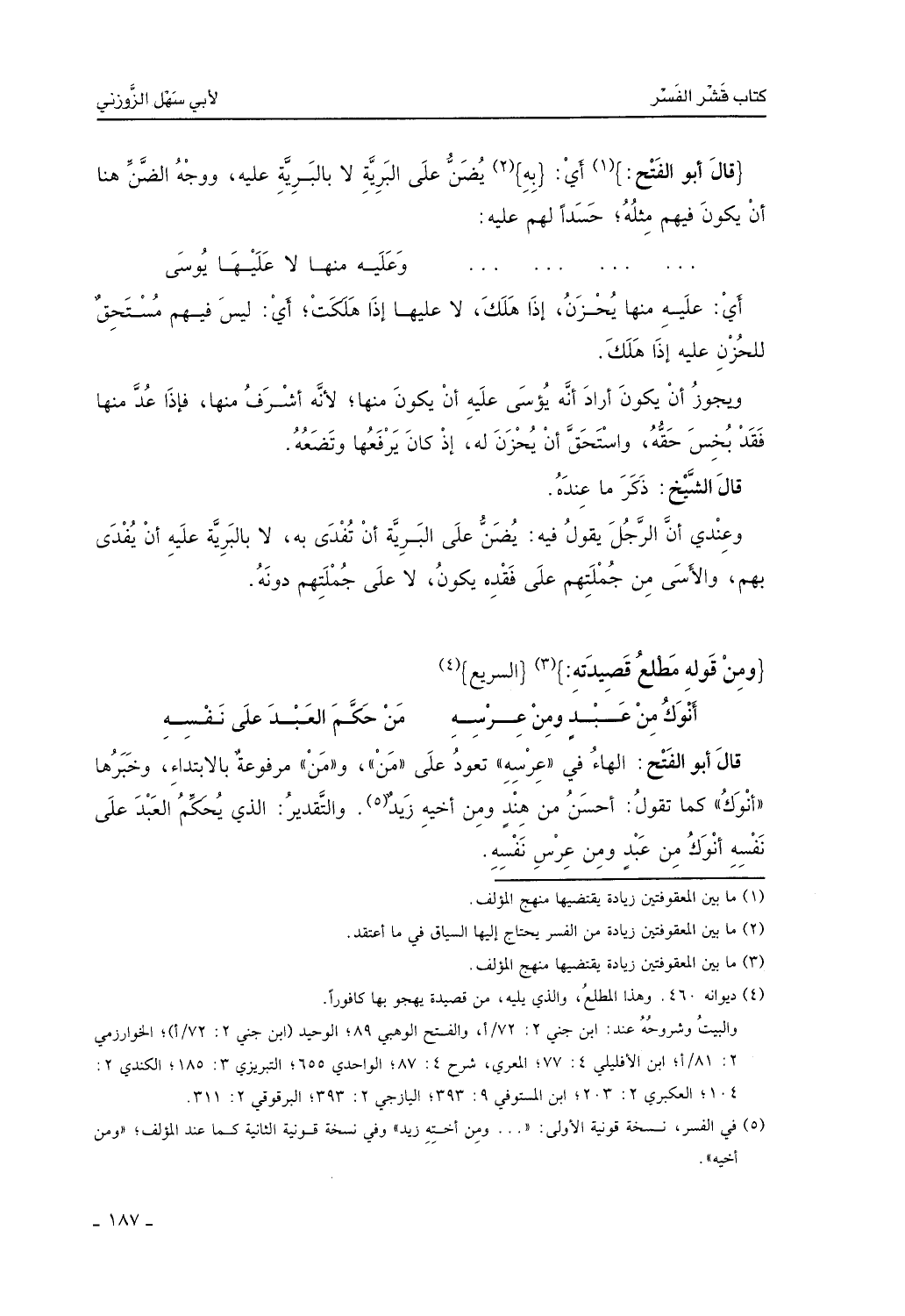 قال الشيخ: ذكر ما عنده، وعندي أن الرجل يقول: فيه يُضن على البرية أن تُفدى به لا بالبرية عليه أن يُفدى بهم والأسى من جملتهم على فقده يكون لا على جملتهم دونه.