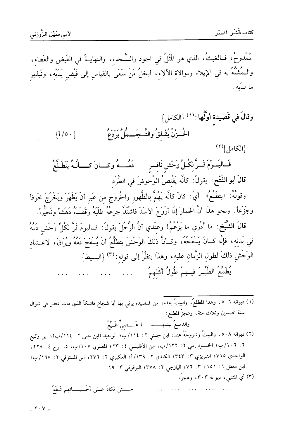 (فاليومَ قَرَّ لكلِّ وحشٍ نافرٍ ... دمُه وكانَ كأنَّه يتطلَّعُ)