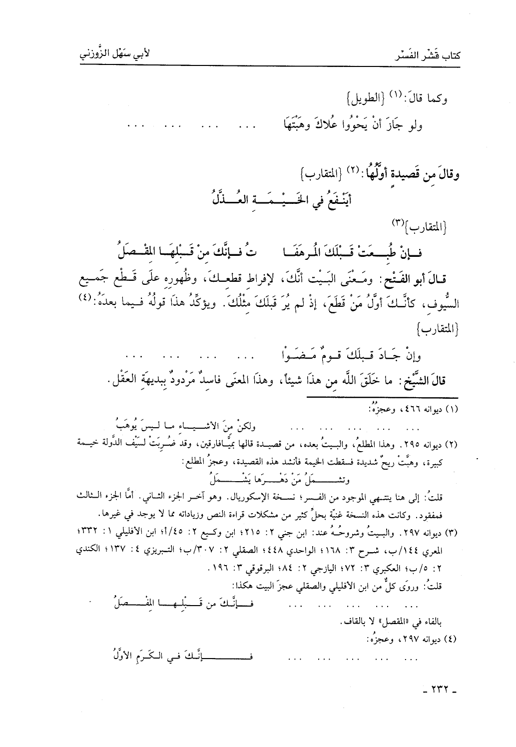 (أينفعُ في الخيمةِ العُذَّلُ؟ ... . . . . . . . . . . . . . . .)