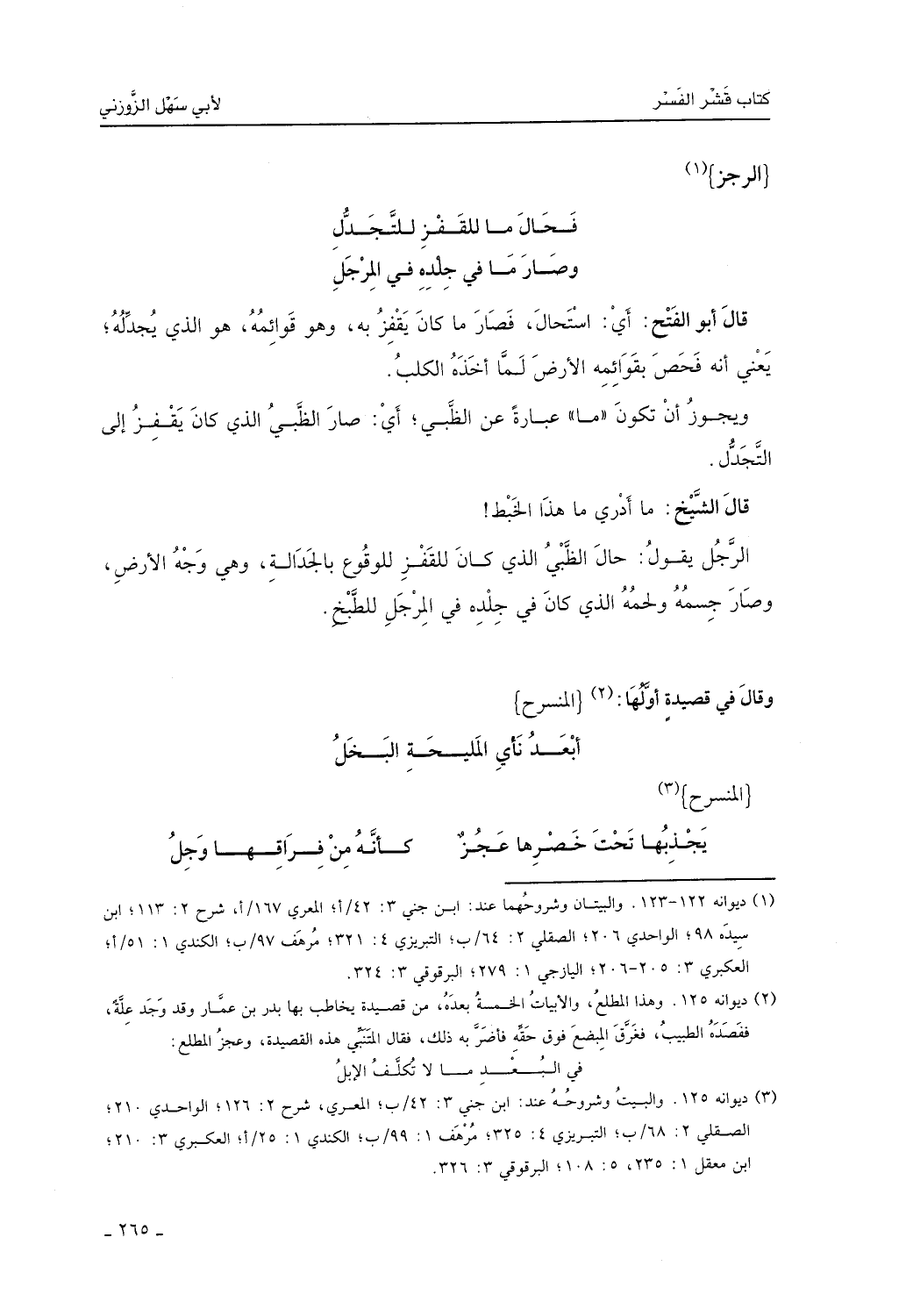 قال الشيخ: ما أدري ما هذا الخبط؟ الرجل يقول: حال الظَّبي الذي كان للقفز للوقوع بالجدالة، وهي وجه الأرض، وصار جسمه ولحمه الذي كان في جلده في المرجل للطبخ.