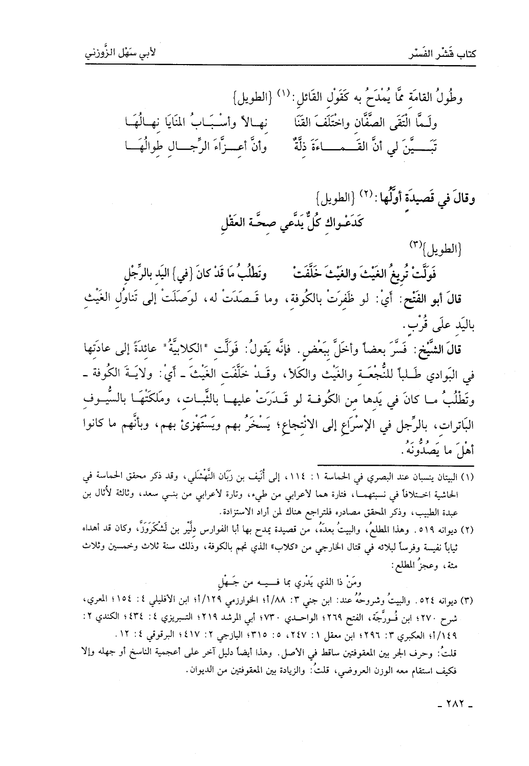 ولَّما التقى الصَّفَّان واختلفَ القنا ... نِهالاً وأسبابُ المنايا نِهالُها