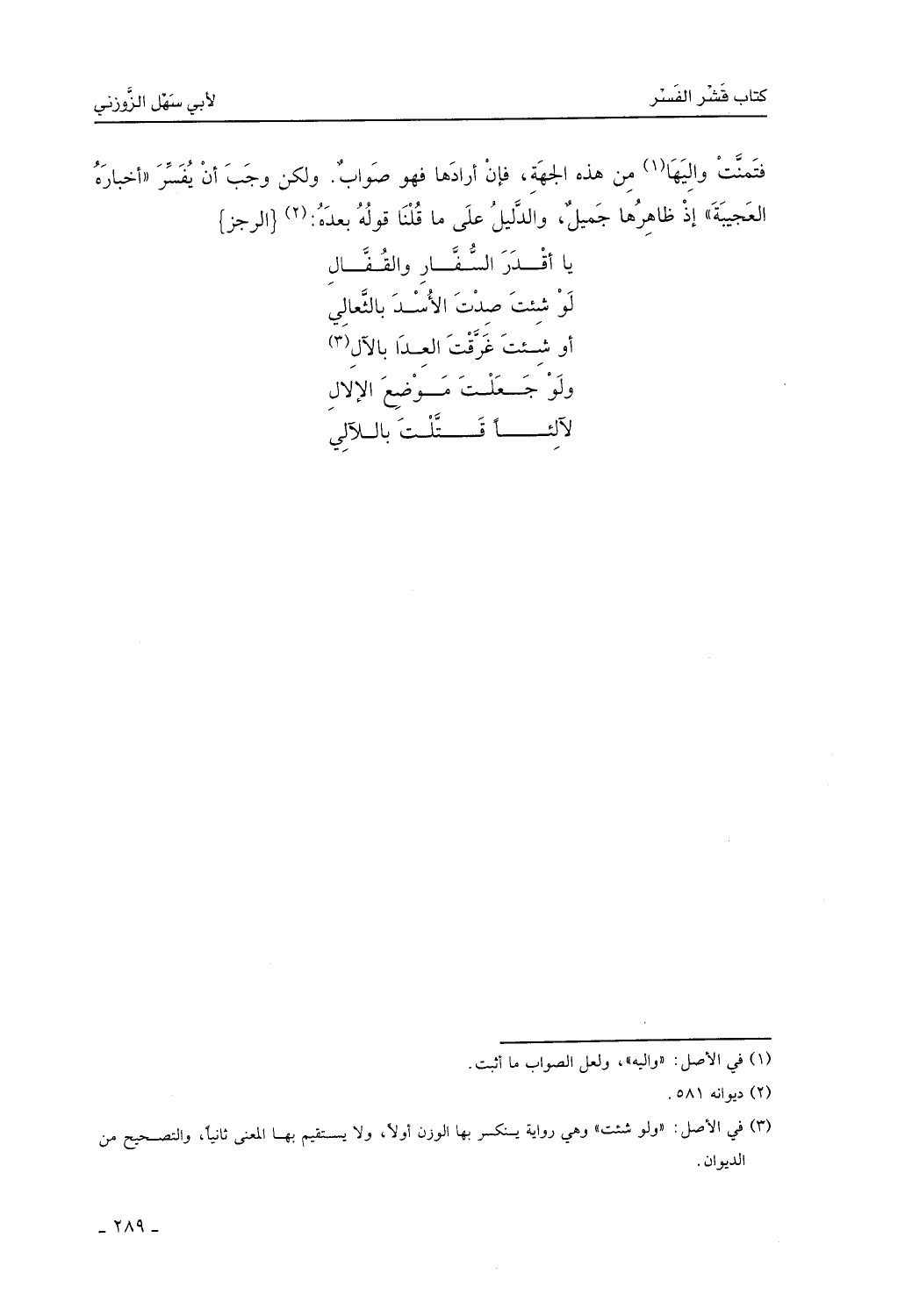 يا أقدرَ السُّفَّارِ والقُفَّالِ ... لو شئتَ صدتَ الأُسدَ بالثَّعالي