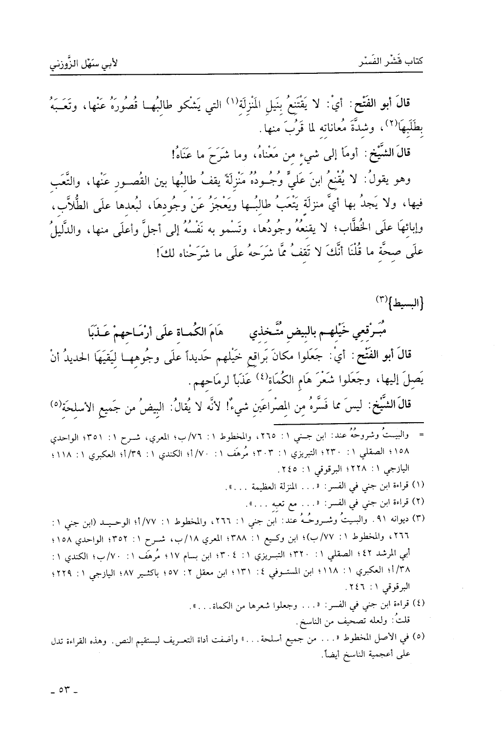 قال الشيخ: ليس مما فسره من المصراعين شيء، لأنه لا يقال: البيض من جميع الأسلحة