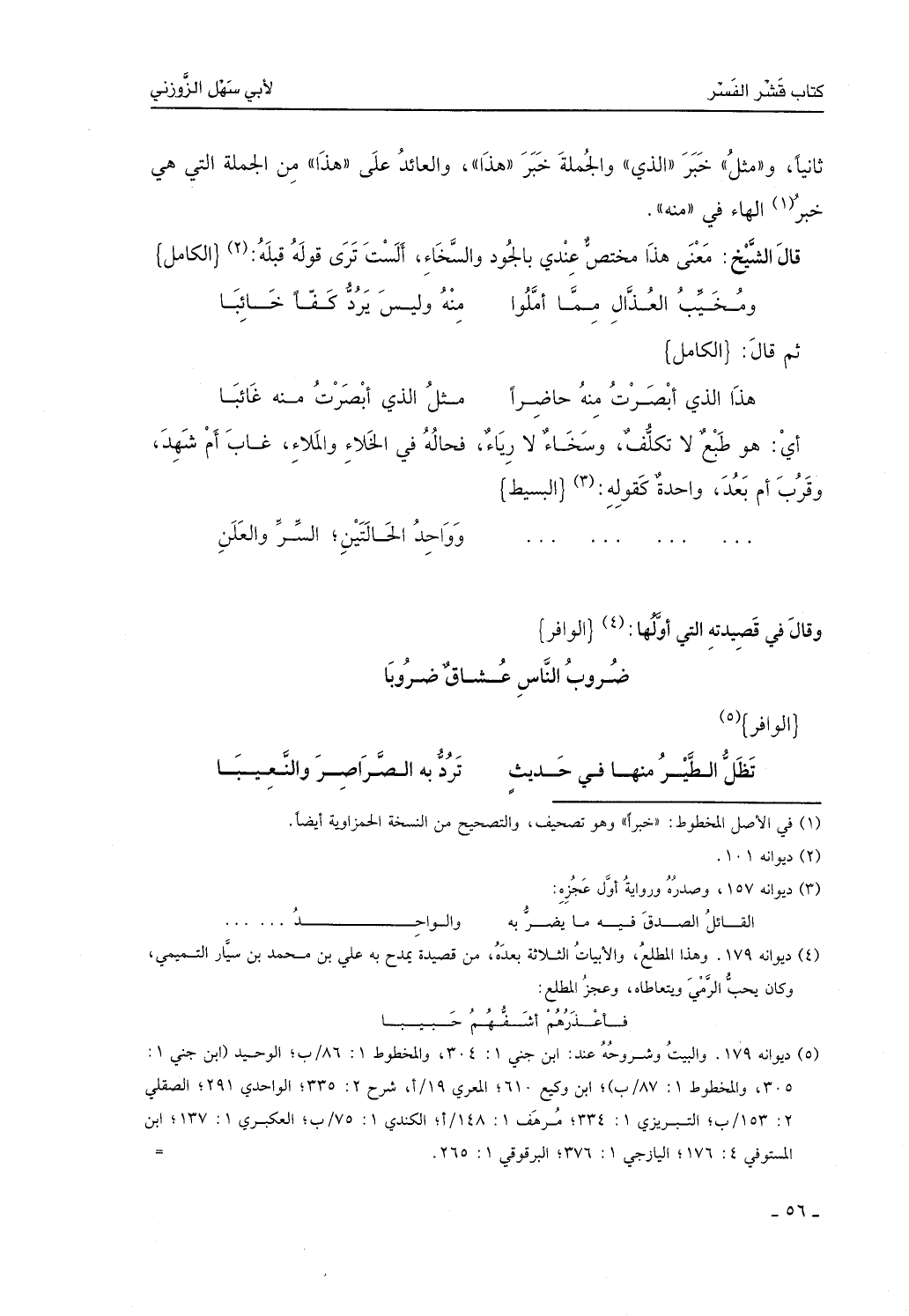 قال الشيخ: معنى هذا مختص عندي بالجود والسخاء، ألست ترى قوله قبله؟