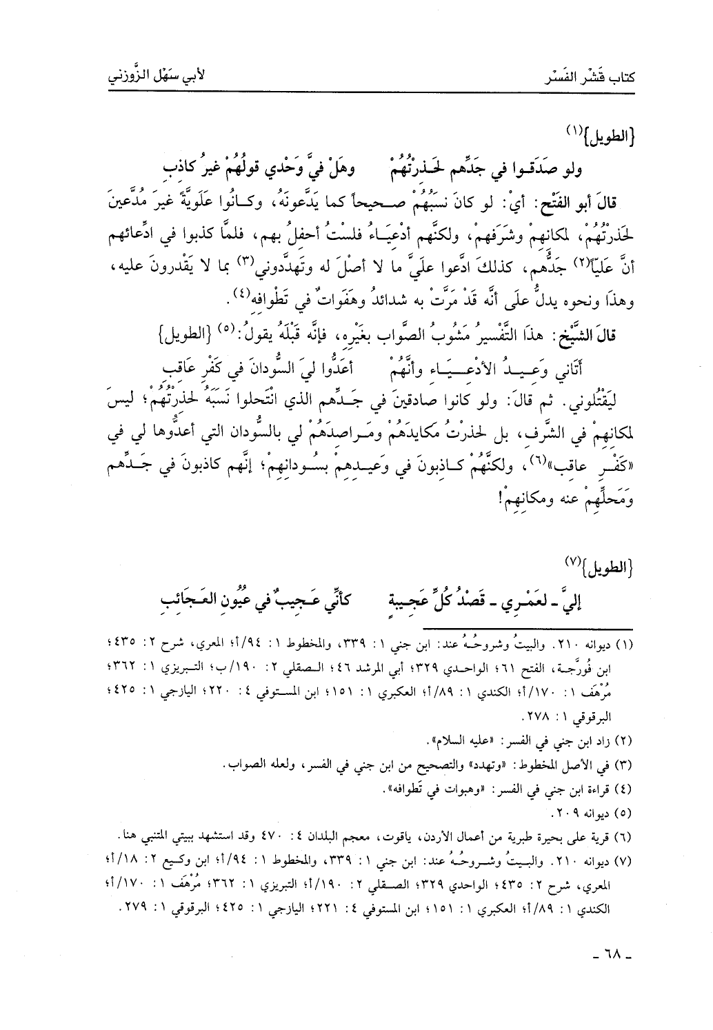 ليقتلوني، ثم قال: ولو كانوا صادقين في جدهم الذي انتحلوا نسبه لحذرتهم ليس لمكانهم في الشرف بل لحذرت مكائدهم ومراصدهم لي بالسُّودان التي أعدوها لي من كفر عاقب، ولكنهم كاذبون في وعيدهم بسودانهم كما أنهم كاذبون في جدهم ومحلهم عنه ومكانهم.
