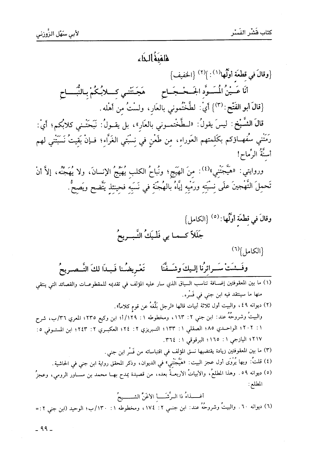 (أنا عينُ المُسَوَّدِ الجَحْجاحِ ... هجَّنتْني كلابكُم بالنُّباحٍ)