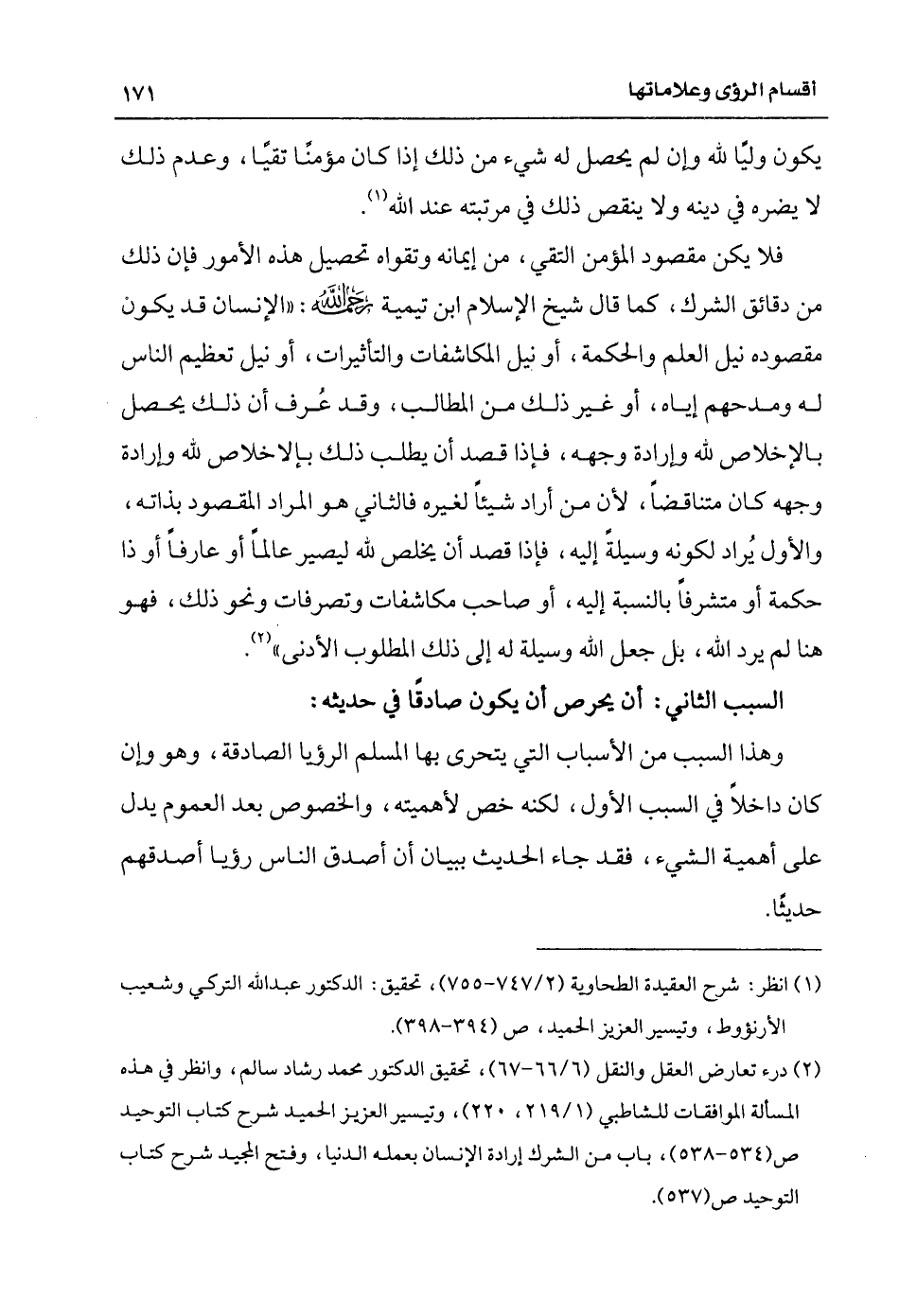 (¬2) "درء تعارض العقل والنقل" (6/ 66، 67) تحقيق الدكتور محمد رشاد سالم، وانظر في هذه المسألة "الموافقات للشاطبي" (1/ 219، 220) و"تيسير العزيز الحميد شرح كتاب التوحيد" (534، 538) باب "من الشرك إرادة الإنسان بعمله الدنيا"، و"فتح المجيد شرح كتاب التوحيد" (ص537).