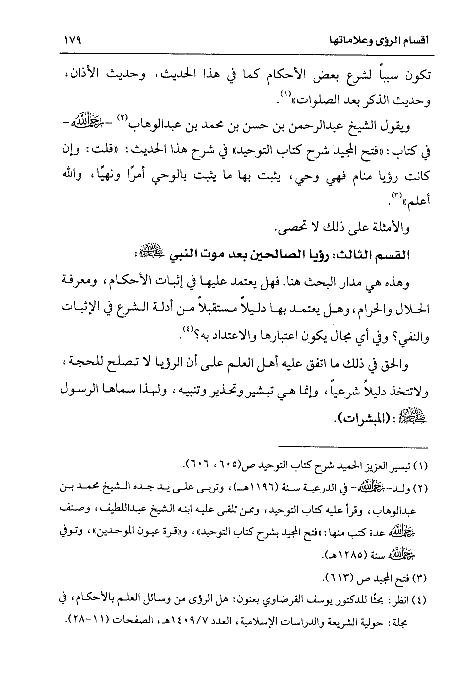 (¬4) انظر: بحثًا للدكتور يوسف القرضاوي بعنوان: هل الرؤى من وسائل العلم بالأحكام في مجلة: حولية الشريعة والدراسات الإسلامية العدد (7/ 1409 هـ) الصفحات (11 - 28).