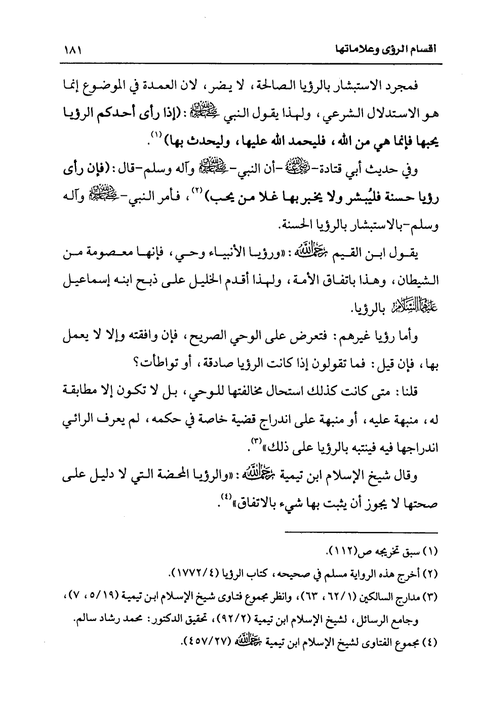قلنا: متى كانت كذلك استحال مخالفتها للوحي، بل لا تكون إلا مطابقة له، منبهة عليه، أو منبهة على اندراج قضية خاصة في حكمه، لم يعرف الرائي اندراجها فيه فينتبه بالرؤيا على ذلك (¬3).
