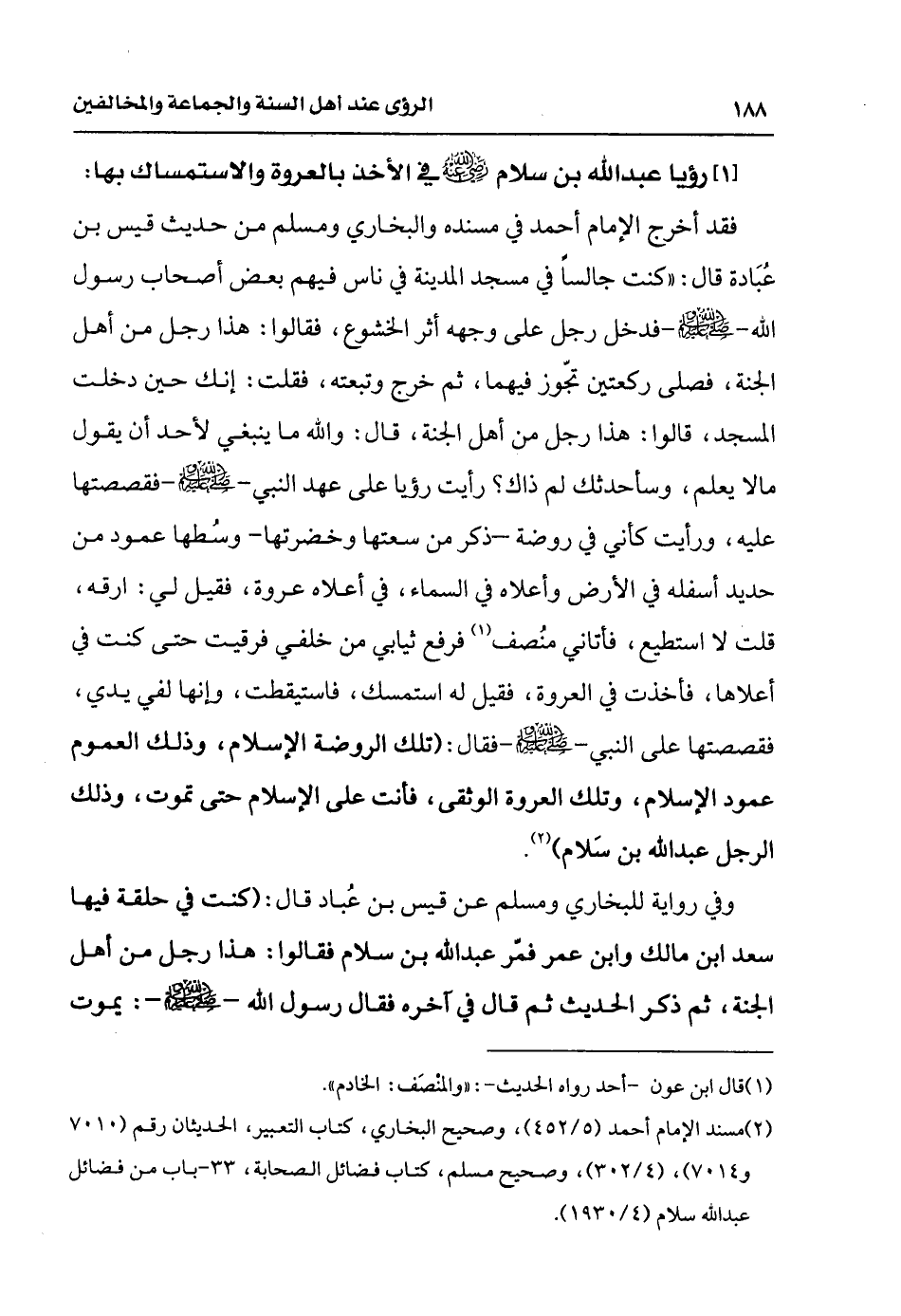 (¬2) مسند الإمام أحمد (5/ 452) وصحيح البخاري كتاب التعبير الحديثان رقم (7010، 7014) (4/ 302) وصحيح مسلم كتاب فضائل الصحابة 33 - باب من فضائل عبد الله بن سلام (4/ 1930).