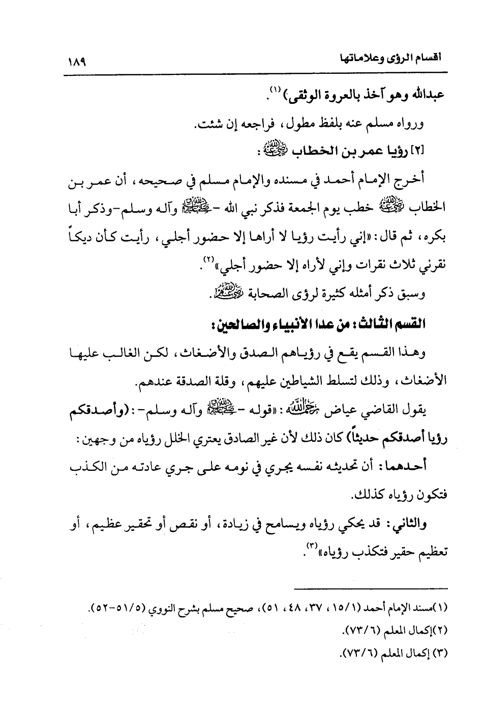 وسبق ذكر أمثلة كثيرة لرؤى الصحابة رضي الله عنهم.