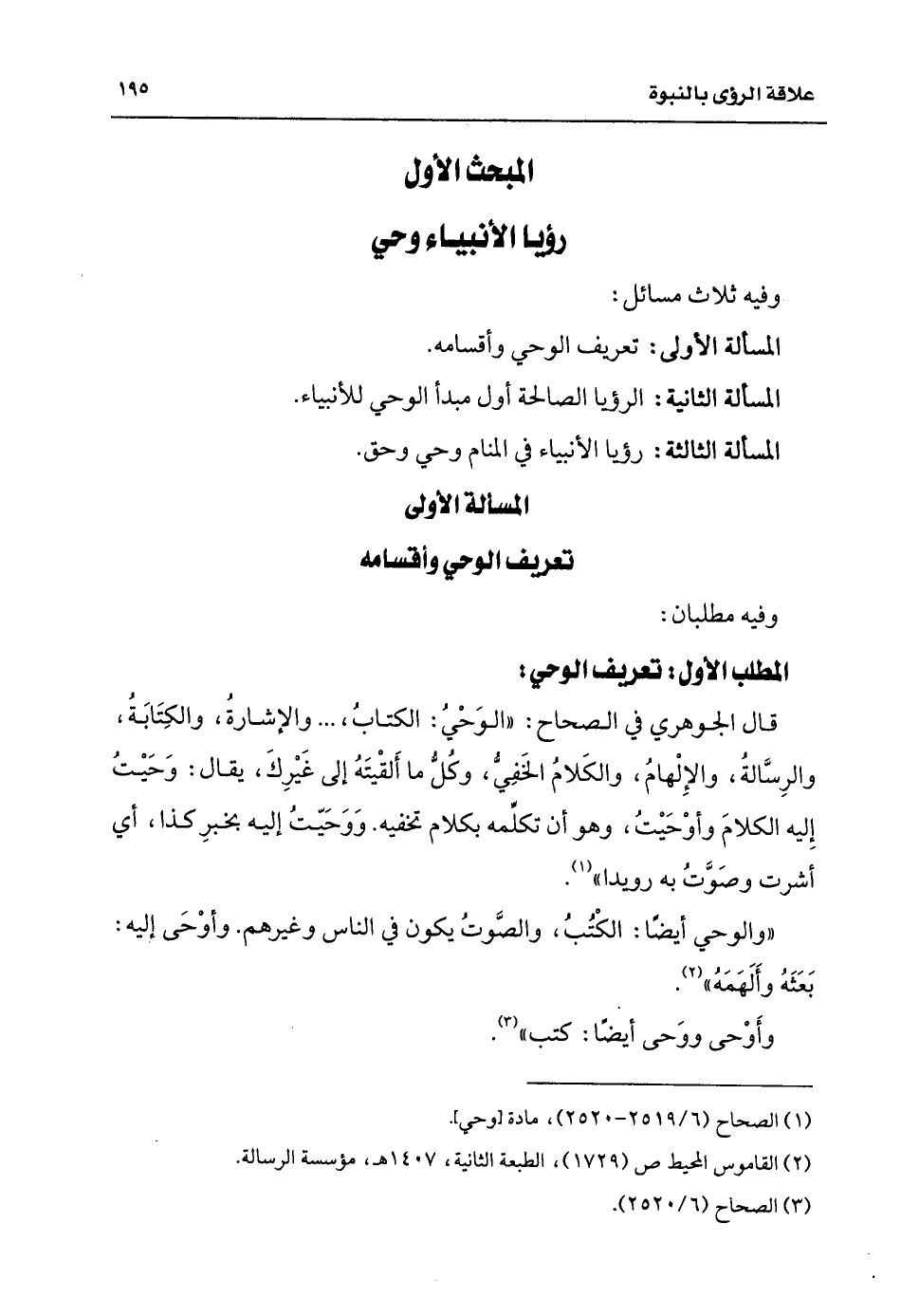 المسألة الأولى: تعريف الوحي وأقسامه.
