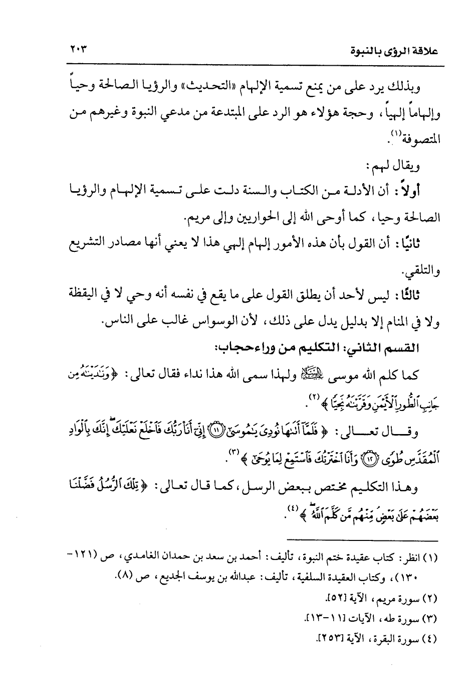 القسم الثاني: التكليم من وراء حجاب: