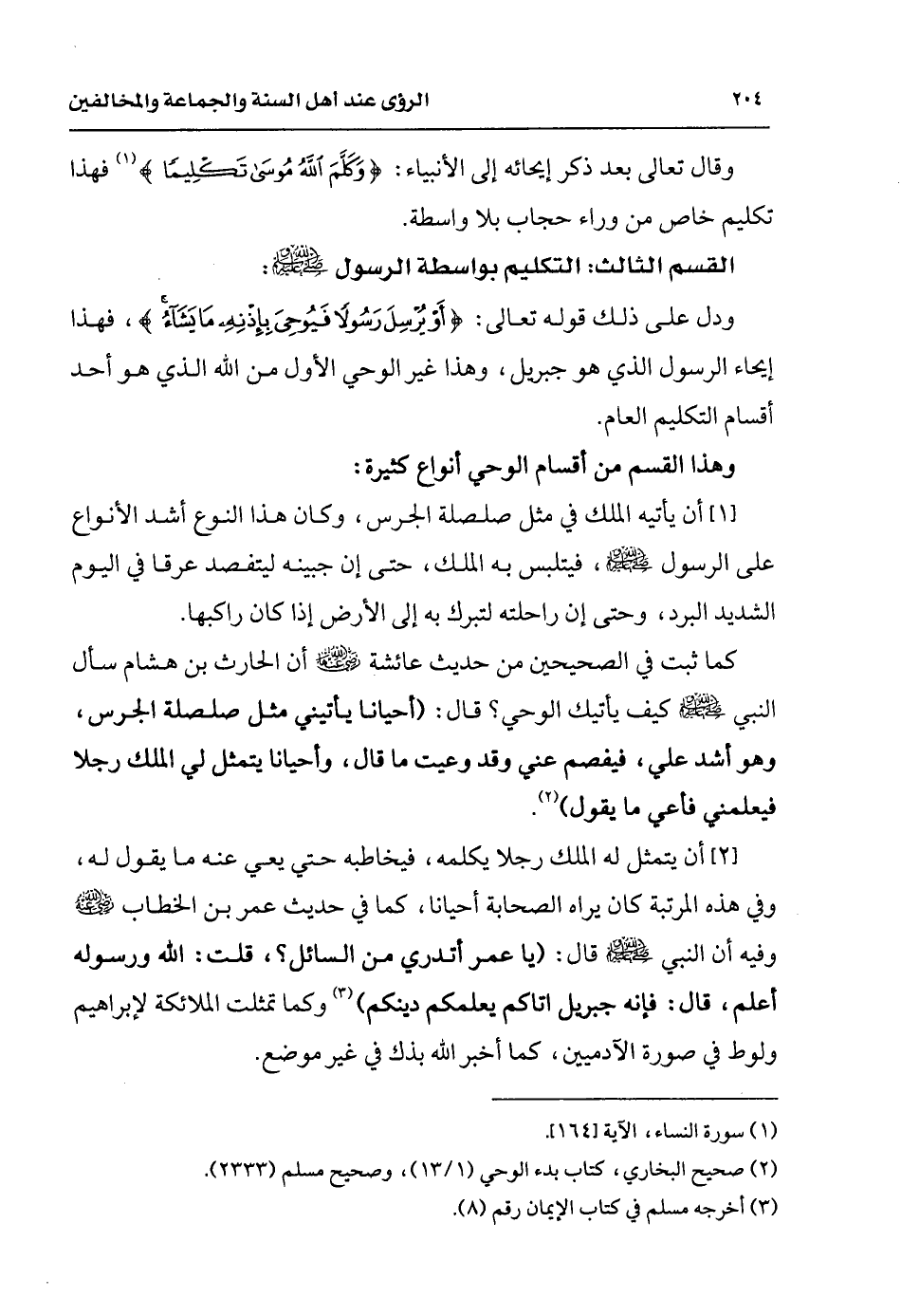 القسم الثالث: التكليم بواسطة الرسول - صلى الله عليه وسلم -: