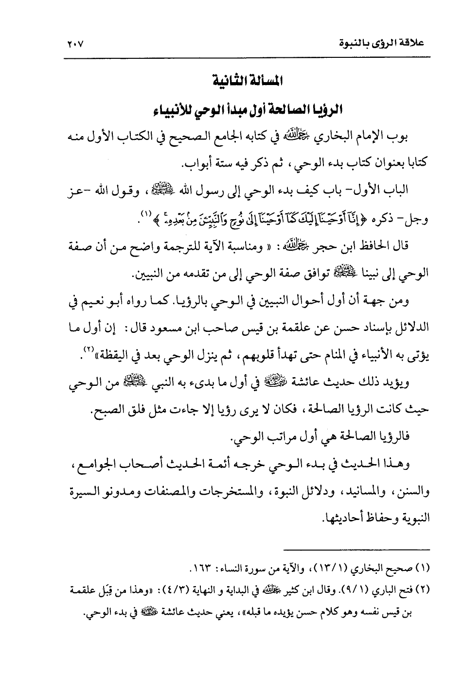 (¬2) فتح الباري (1/ 9) وقال ابن كثير رحمه الله في البداية والنهاية (3/ 4) وهذا من قبل علقمة بن قيس نفسه وهو كلام حسن يؤيده ما قبله، يعني حديث عائشة رضي الله عنها في بدء الوحي.