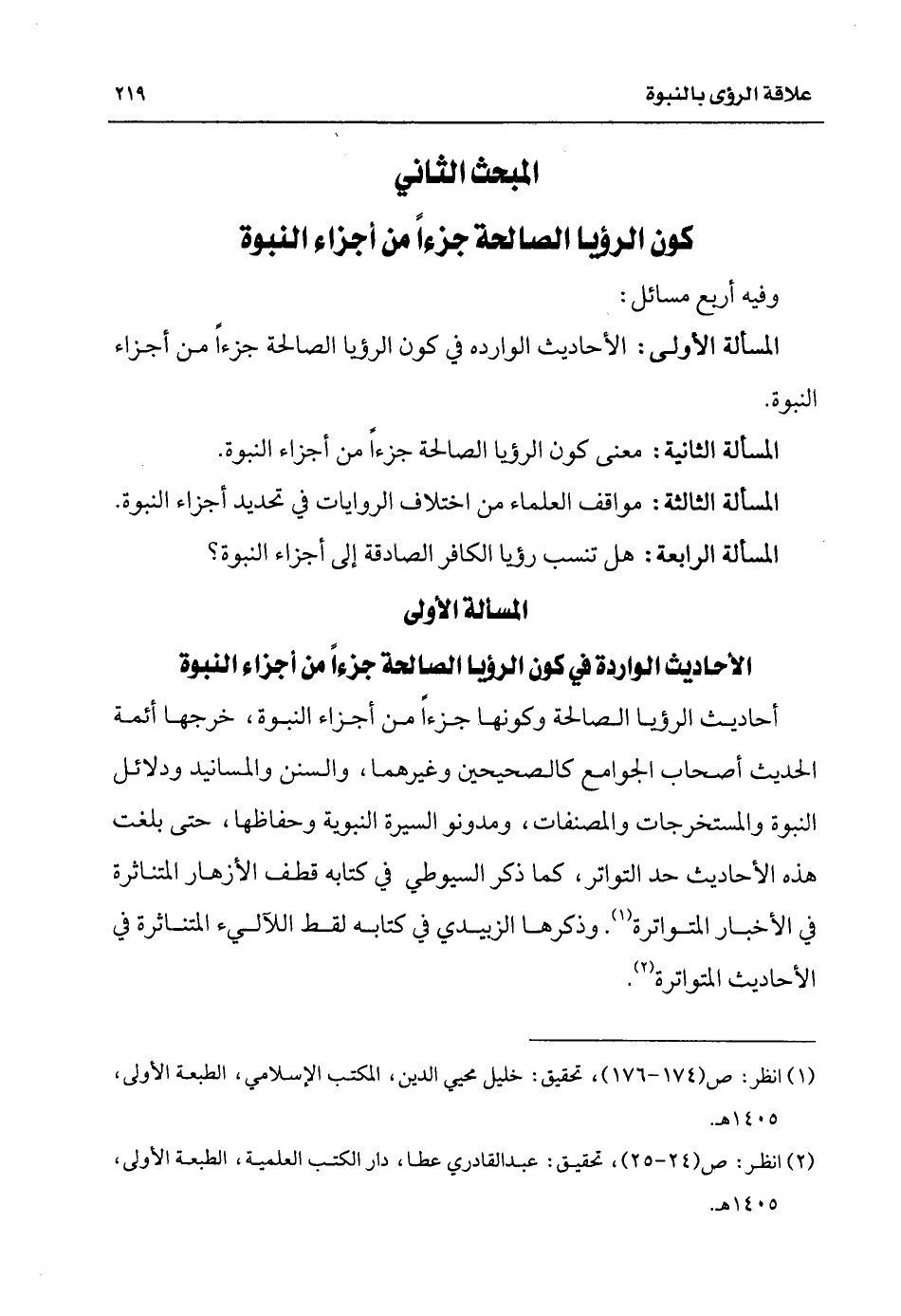المسألة الأولى: الأحاديث الواردة في كون الرؤيا الصالحة جزءًا من أجزاء النبوة.