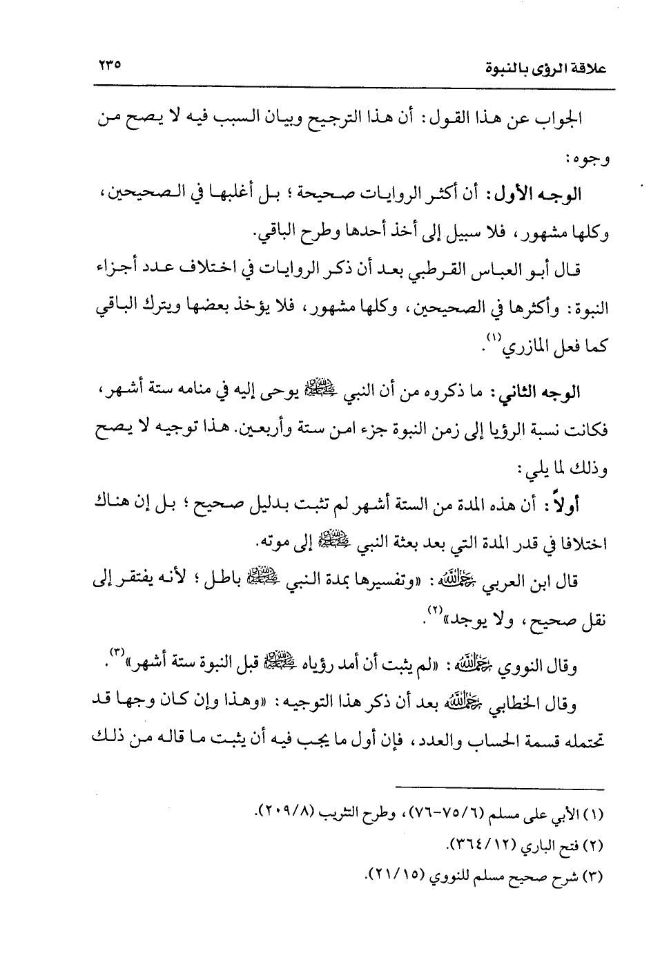 وقال النووي رحمه الله، لم يثبت أن أمد رؤياه - صلى الله عليه وسلم - قبل النبوة ستة أشهر (¬3).