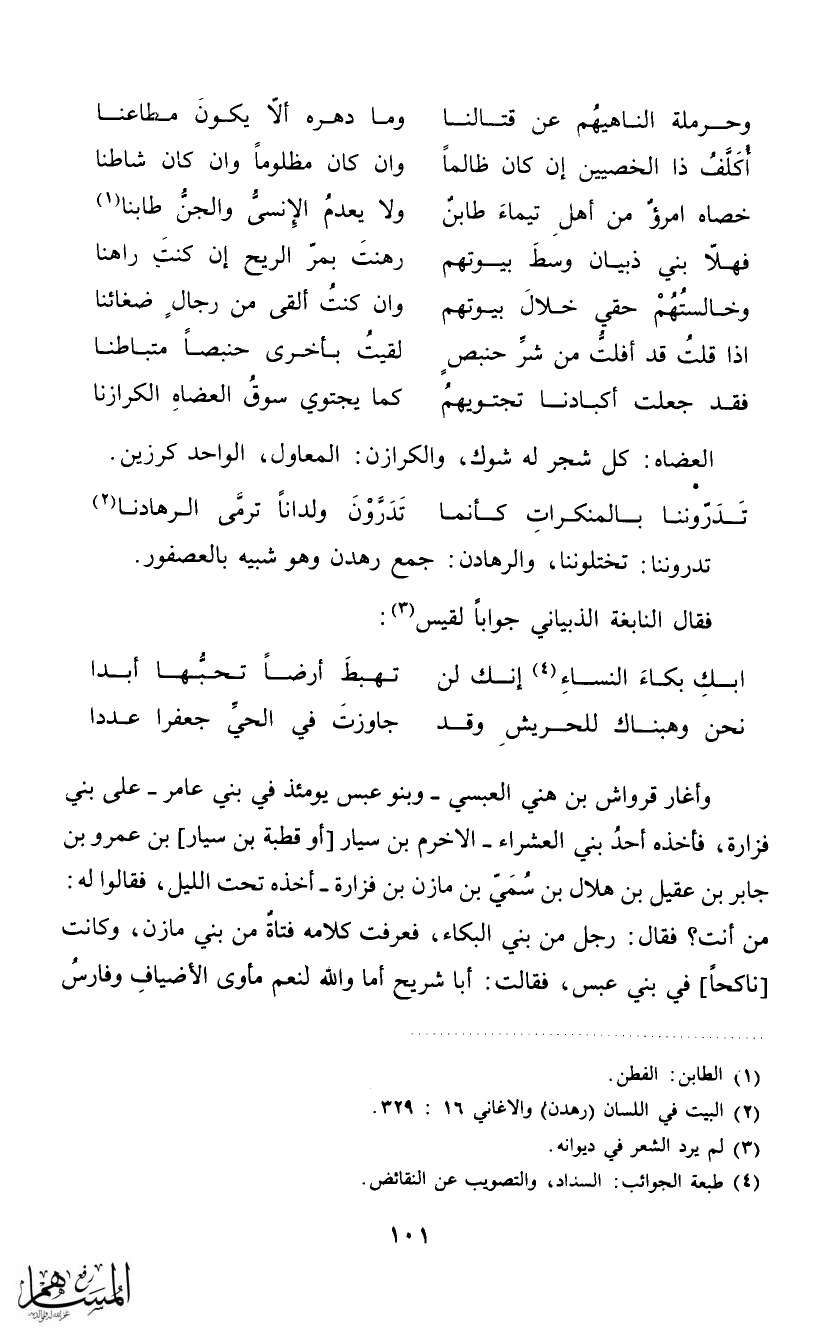 فقال النابغة الذبياني جواباً لقيس (3) :