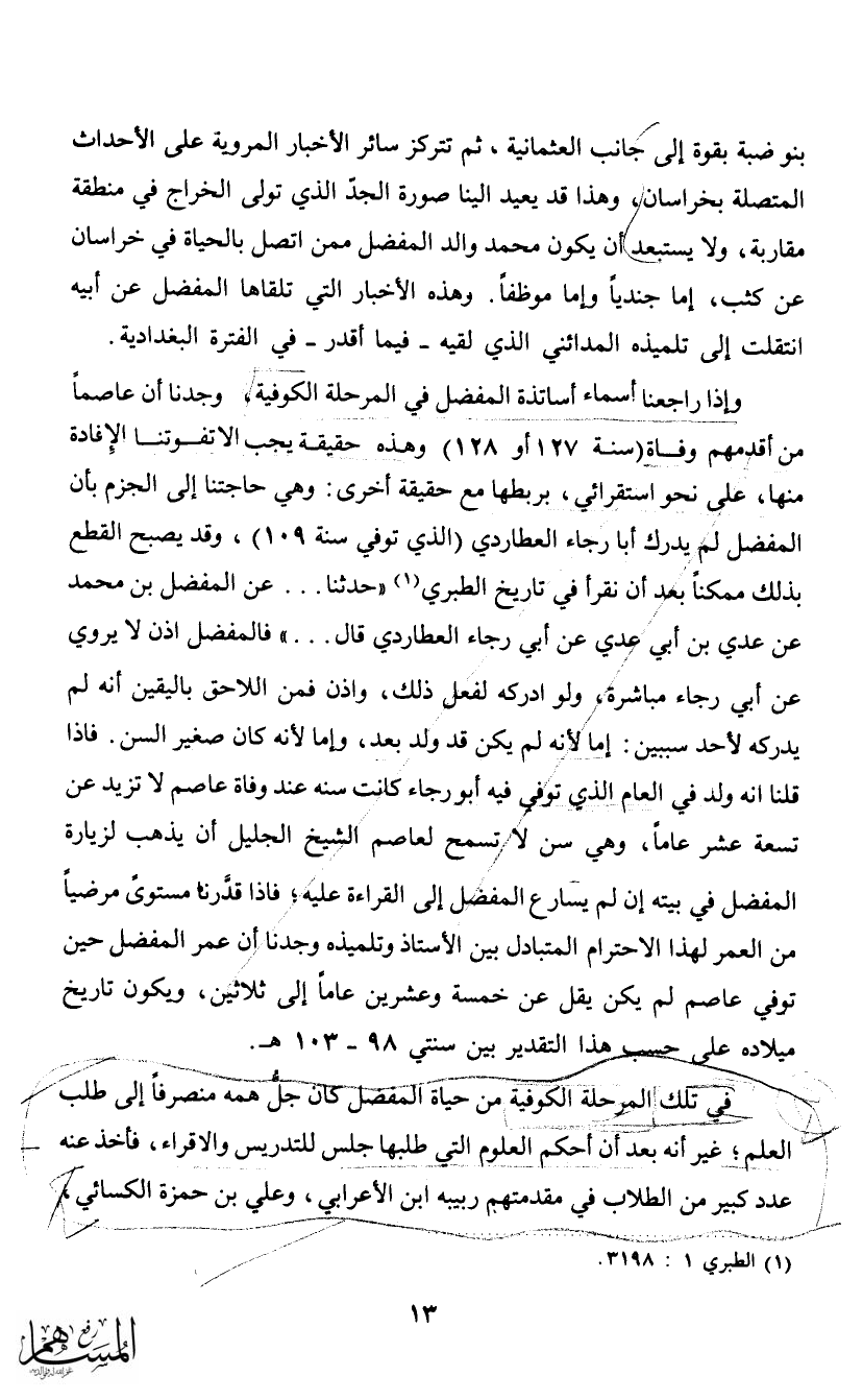 وأخذت مجالس البصرة تشهد المناظرات والمحاورات بين المفضل وعلماء تلك المدينة، من ذك أن سليمان بن علي الهاشمي جمع بين المفضل والأصمعي، وأنشد المفضل في ما أنشد قول أوس بن حجر ((تصمت بالماء تولباً جذعاً)) - فرواه بالذال المعجمة - والجذع هو الفتي الصغير السن من الإبل وغيرها؛ ففطن الأصمعي لخطأه وقال له: أخطأت إنما هو ((تولباً جدعاً)) (1) بالدال المهملة - والجدع السيئ الغذاء، فقال المفضل: ((جذعاً جذعاً)) ورفع صوته، فقال الأصمعي: لو نفخت في الشبور ما نفعك، تكلم كلام النمل وأصب. فلما تمسك كل منهما برأيه وحفظه احتكما إلى غلام حافظ للشعر من بني أسد فصوب رأي الأصمعي (2) ؛ ومع أن قراءة المفضل ذات حظ غير يسير الصواب، فإن العلماء أخذوا بقول الأصمعي الذي أخذت عليه أيضاً تصحيفات كثيرة، مثله في ذلك كثير من العلماء والرواة، إذ لم يكن المفضل بدعاً في هذا الصدد، وله تصحيفات سنأتي على ذكرها من بعد.