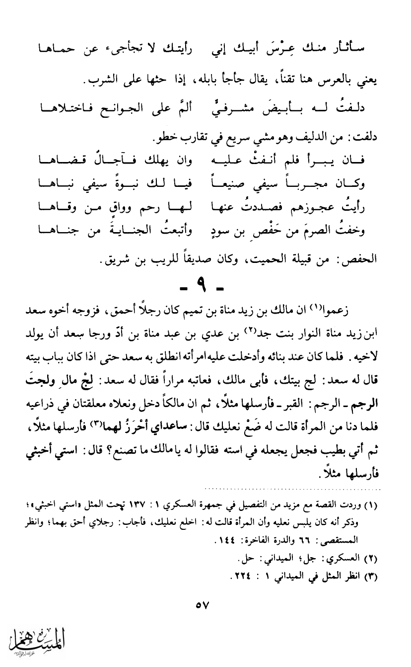 (1) وردت القصة مع مزيد من التفصيل في جمهرة العسكري 1: 137 تحت المثل " استي اخبثي "؛ وذكر أنه كان يلبس نعليه وأن المرأة قالت له: اخلع نعليك، فأجاب: رجلاي أحق بهما؛ وانظر المستقصي: 66 والدرة الفاخرة: 144.