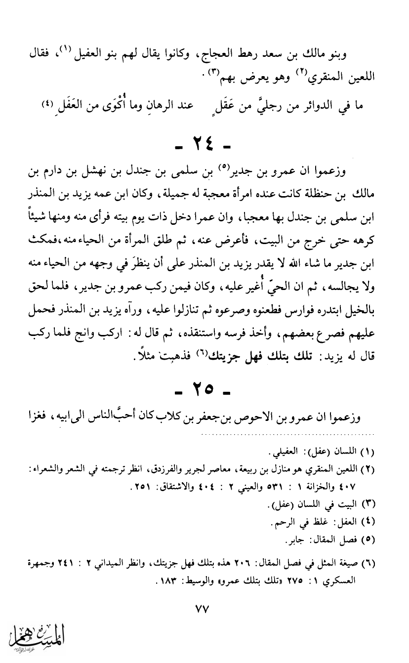 (2) اللعين المنقري هو منازل بن ربيعة، معاصر لجرير والفرزدق، انظر ترجمته في الشعر والشعراء: 407 والخزانة 1: 531 والعيني 2: 404 والاشتقاق: 251.