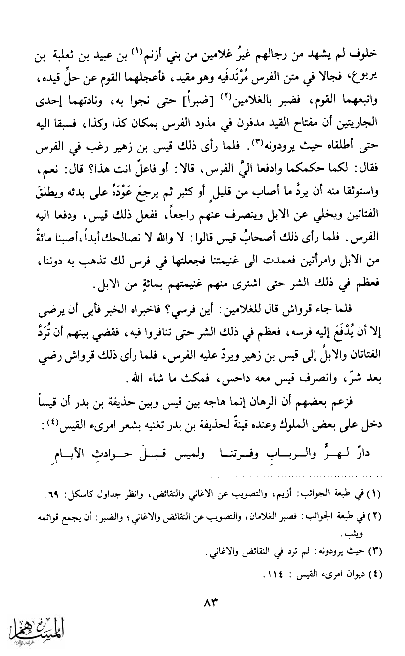 (2) في طبعة الجوائب: فصبر الغلامان، والتصويب عن النقائض والأغاني؛ والضبر: أن يجمع قوائمه ويثب.