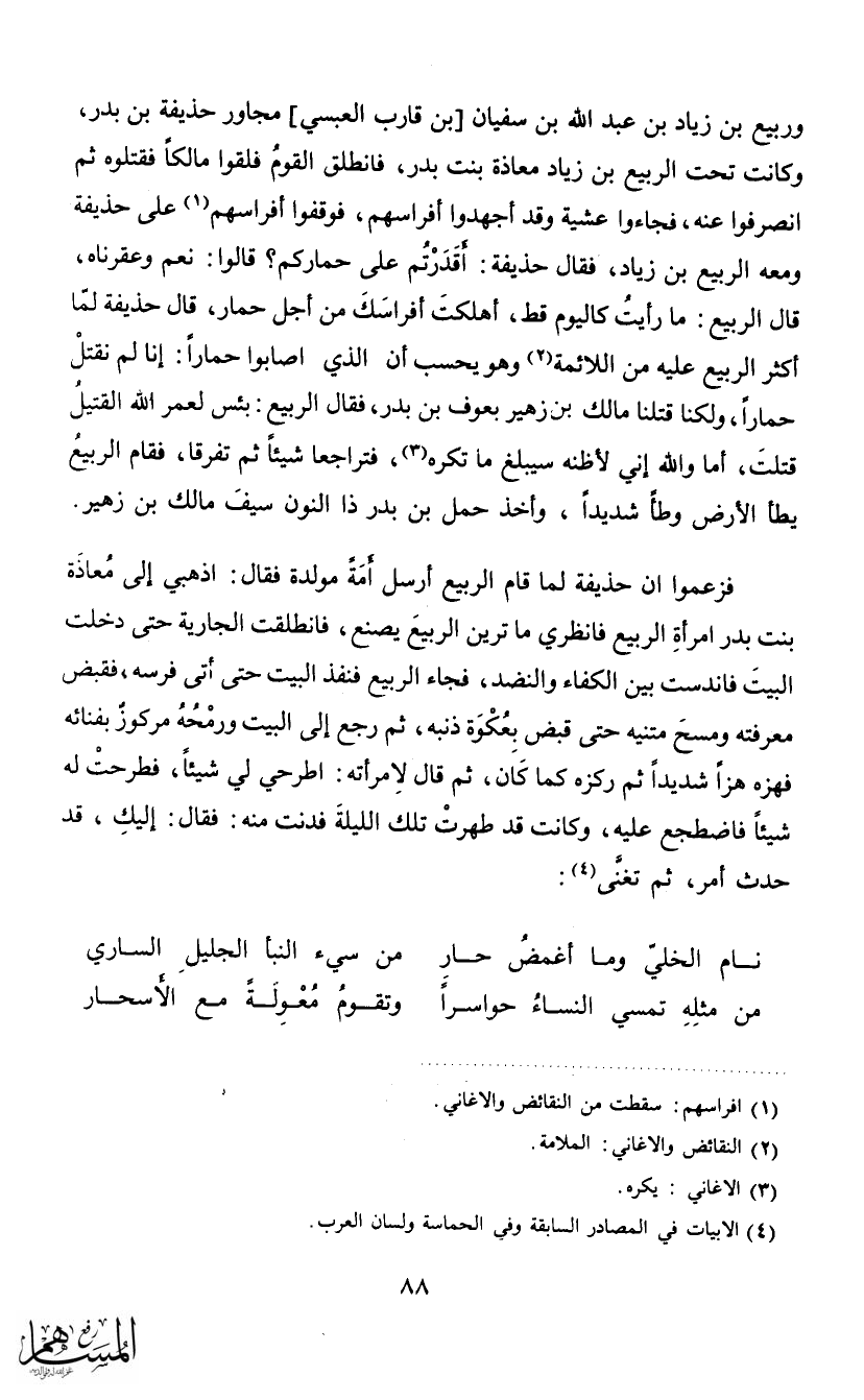 (4) الأبيات في المصادر السابقة وفي الحماسة ولسان العرب.