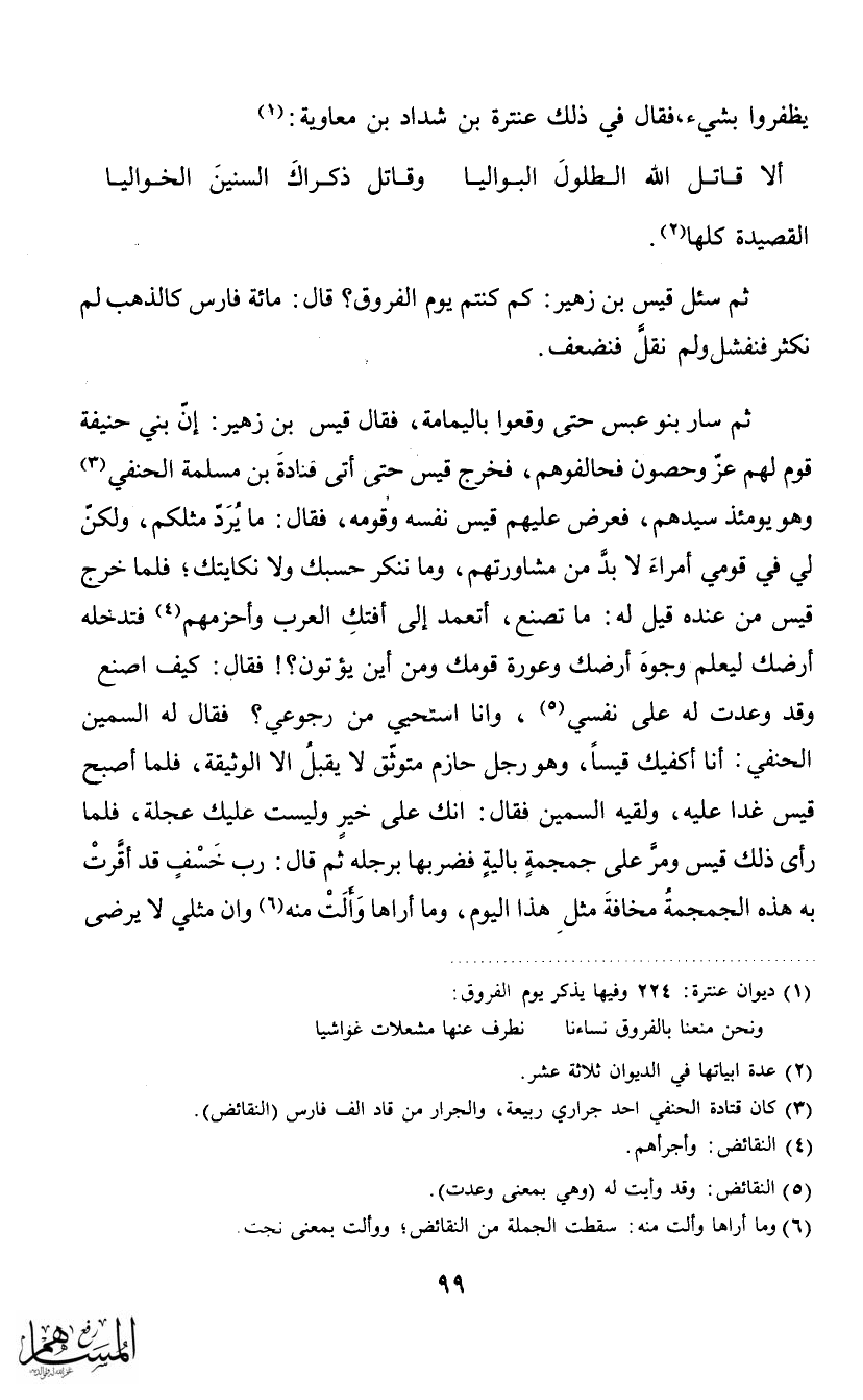 (1) ديوان عنترة: 224 وفيها يذكر يوم الفروق: