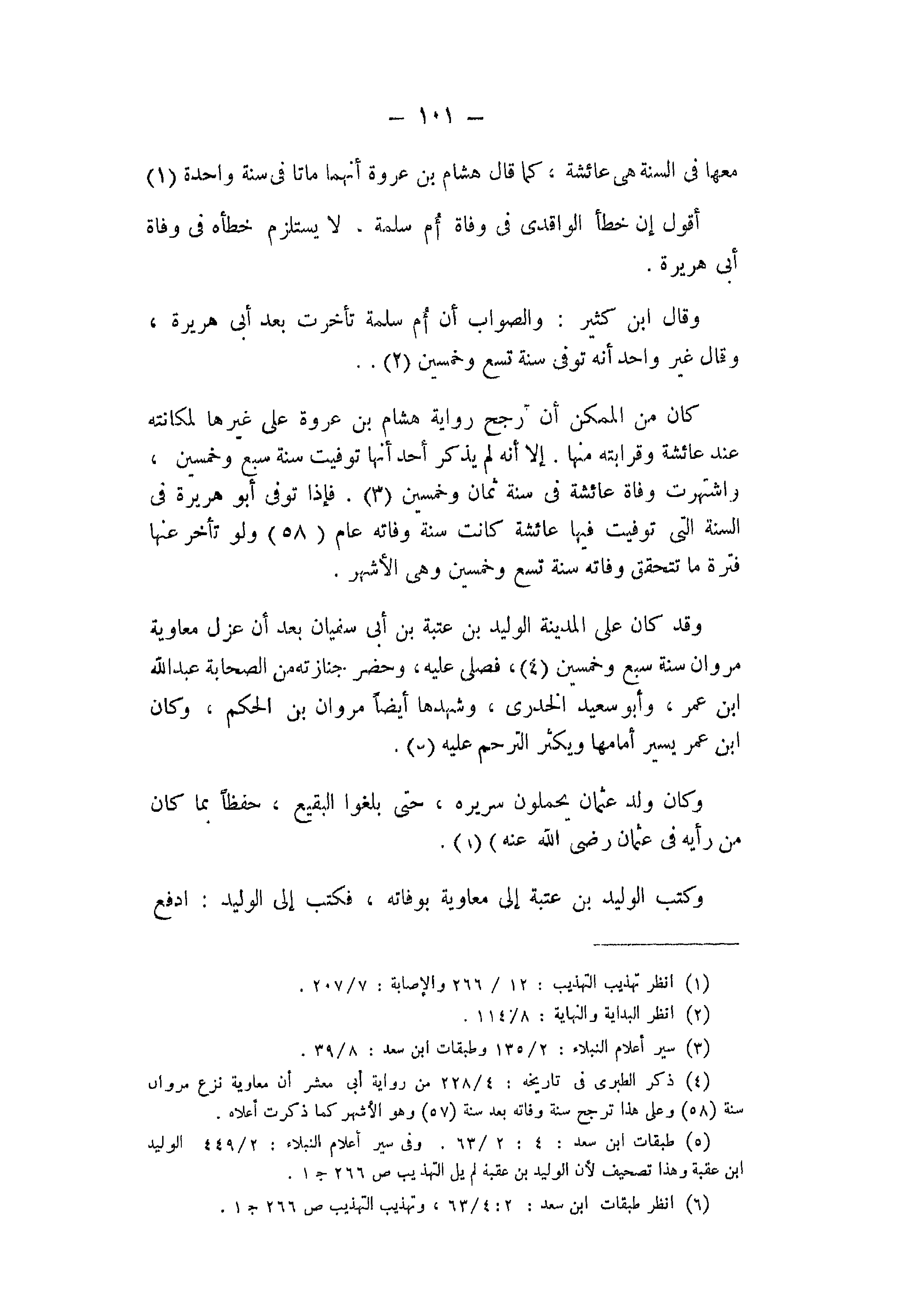 (6) انظر " طبقات ابن سعد ": 2: 4 8 63. و " تهذيب التهذيب ": ص 266، جـ 1.