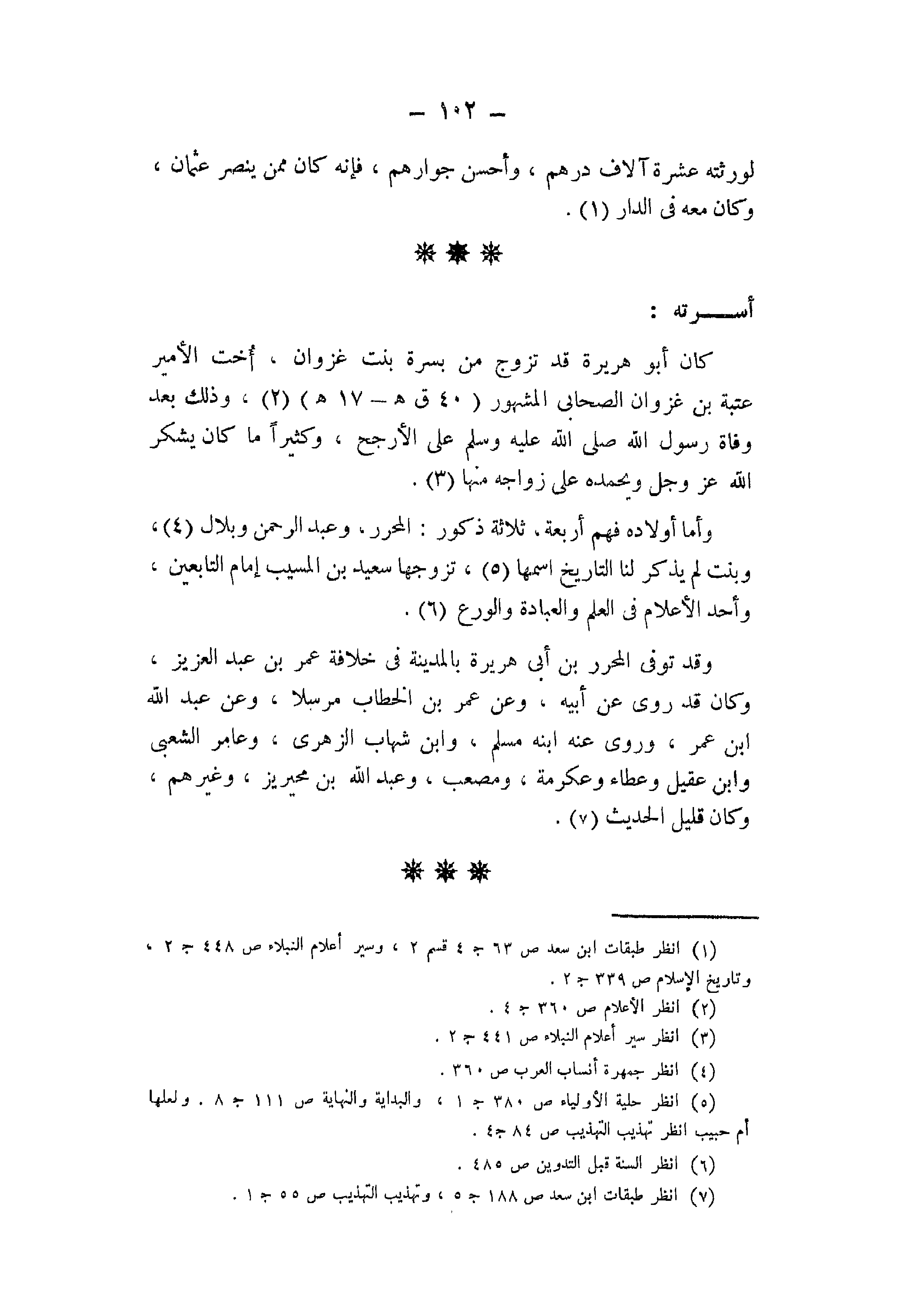 (7) انظر " طبقات ابن سعد ": ص 188، جـ 5. و " تهذيب التهذيب ": ص 55، جـ 1.