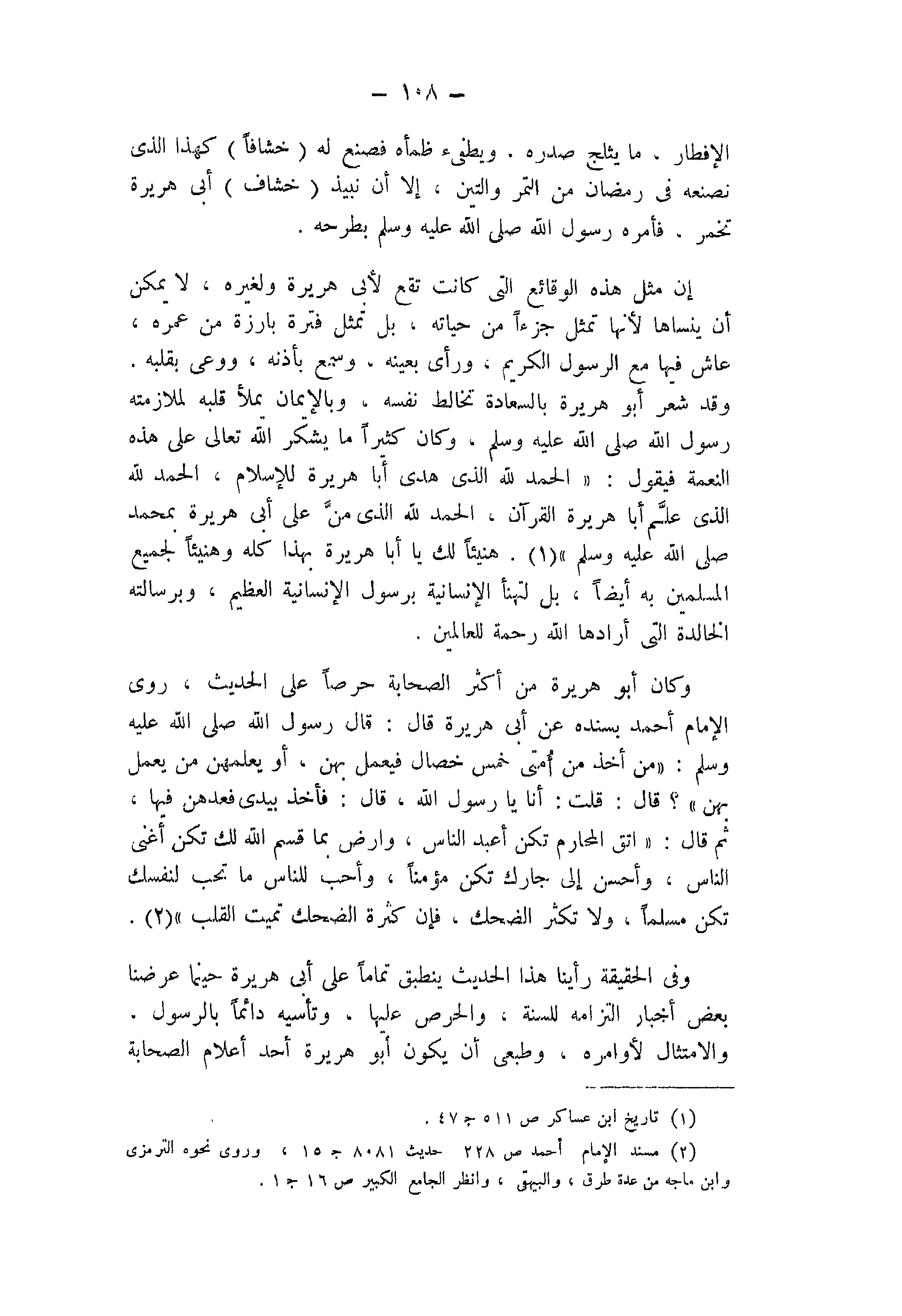 (2) " مسند الإمام أحمد ": ص 228، حديث 8081، جـ 15، وروى نحوه الترمذي وابن ماجه من عدة طرق، والبيهقي، وانظر " الجامع الكبير ": ص 16، جـ 1.