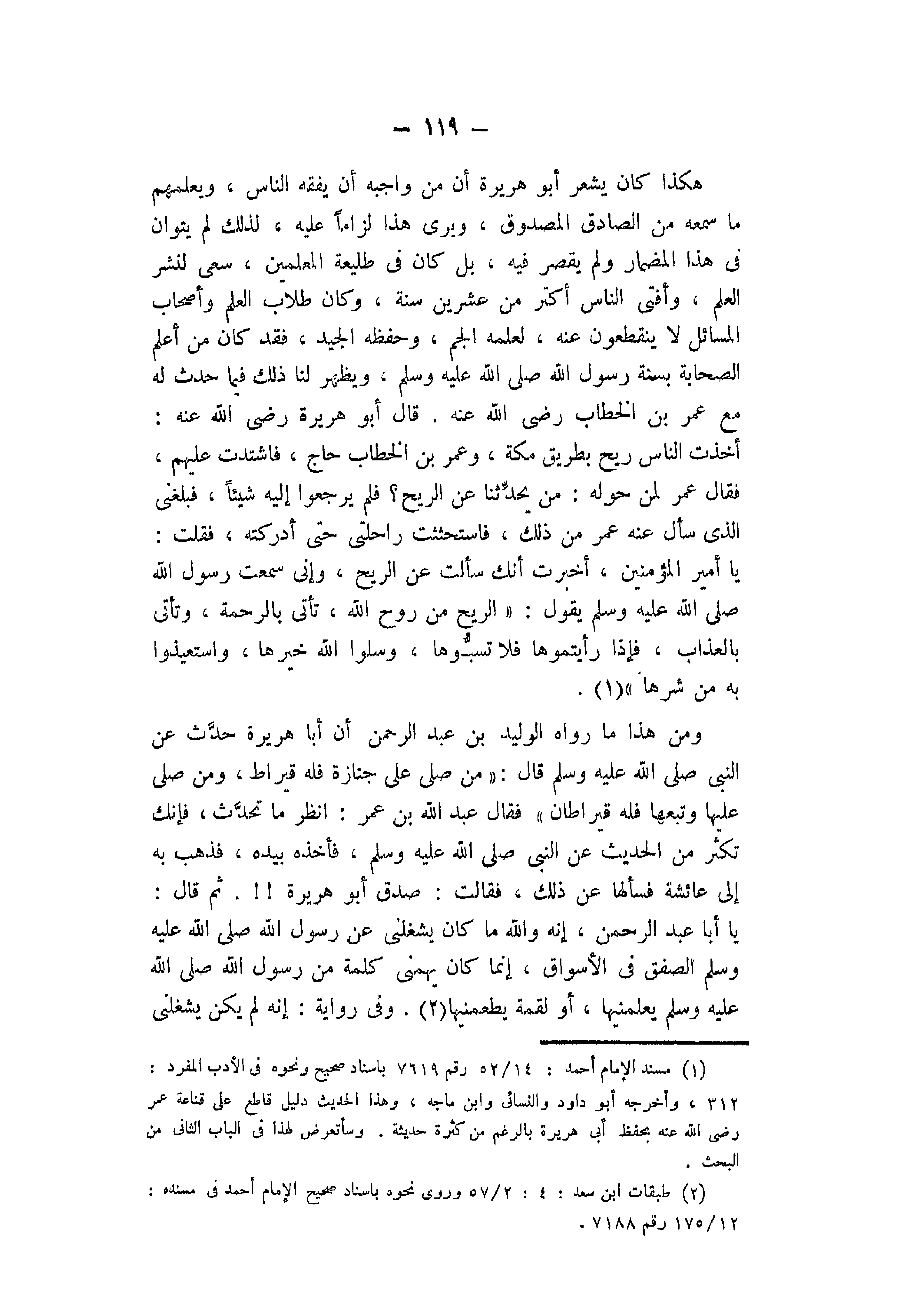 (2) " طبقات ابن سعد ": 4: 2/ 57 وروى نحوه بإسناد صحيح الإمام أحمد في " مسنده ": ص 175، جـ 12 رقم 7188.