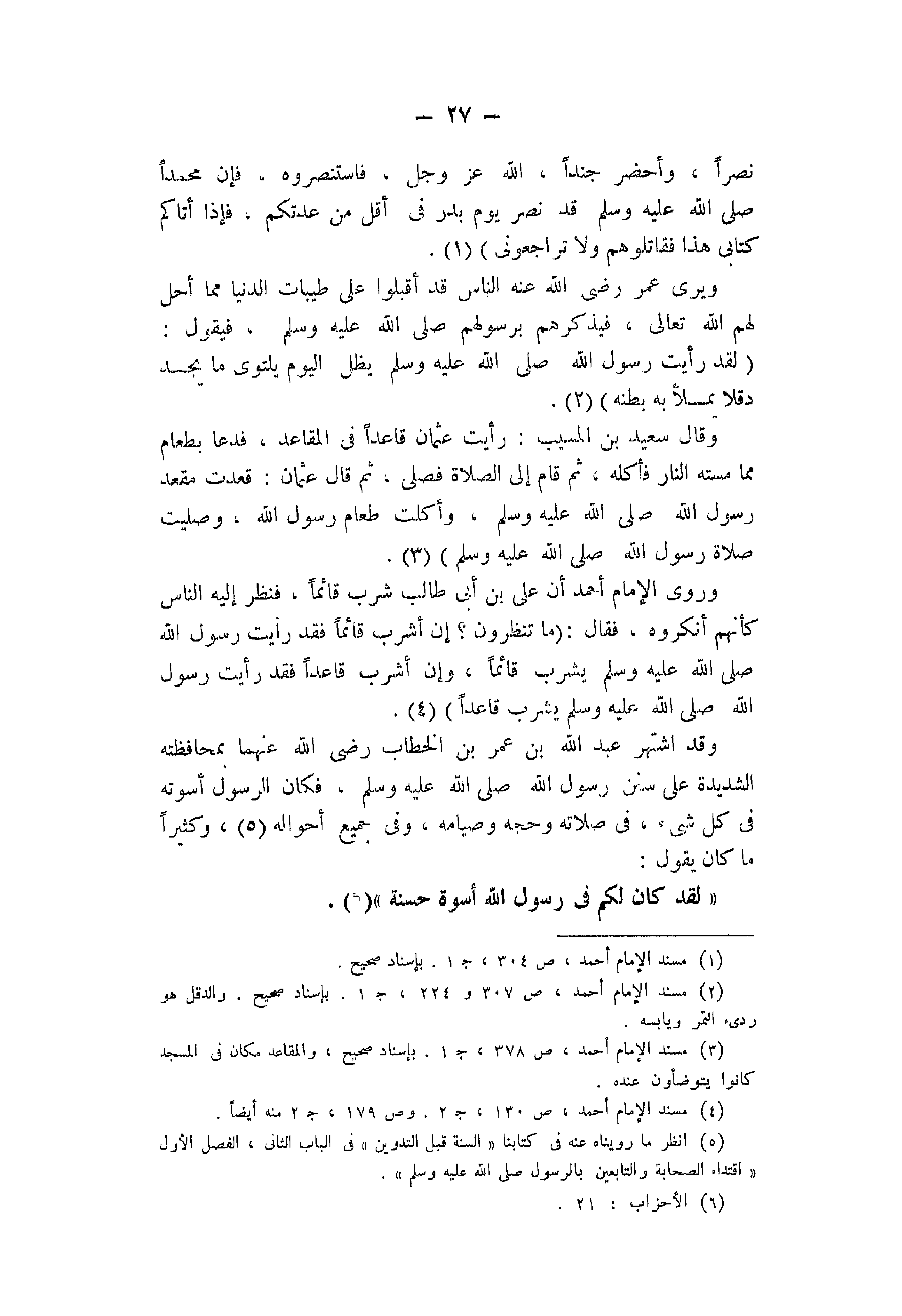 (5) انظر ما رويناه عنه في كتابنا " السُنَّة قبل التدوين " في الباب الثاني، الفصل الأول: اقتداء الصحابة والتابعين بالرسول - صَلََّى اللهُ عَلَيْهِ وَسَلَّمَ -.