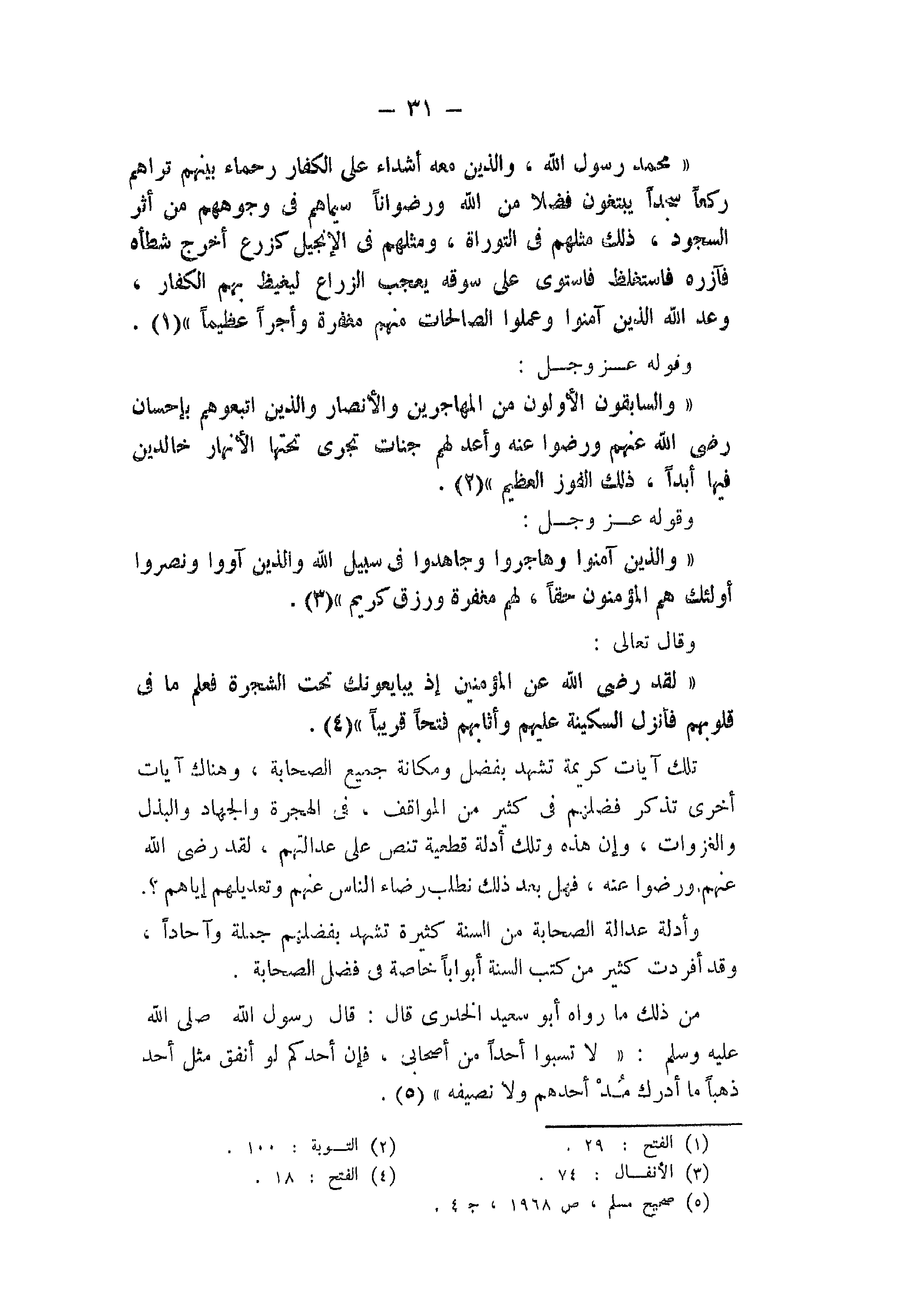 تلك آيات كريمة تشهد بفضل ومكانة جميع الصحابة، وهناك آيات أخرى تذكر فضلهم في كثير من المواقف، في الهجرة والجهاد والبذل والغزوات، وإنَّ هذه وتلك أدلة قطعية تنصُّ على عدالتهم، لقد رضي الله عنهم، ورضوا عنه، فهل بعد ذلك نطلب رضاء الناس عنهم وتعديلهم إياهم؟.