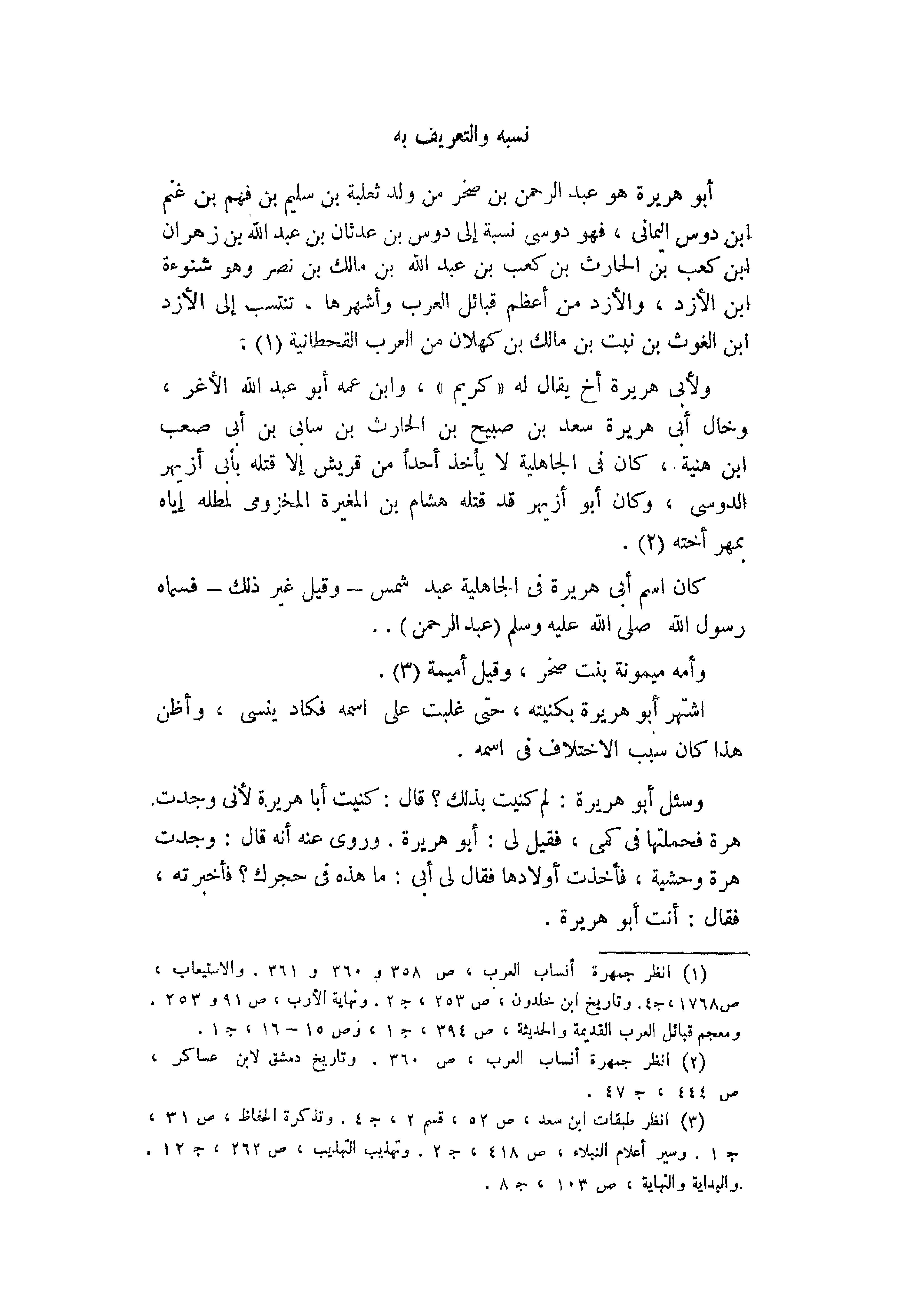 كان اسم أبي هريرة في الجاهلية عبد شمس - وقيل غير ذلك - فسمَّاهُ رسول الله - صَلََّى اللهُ عَلَيْهِ وَسَلَّمَ - (عبد الرحمن) ...