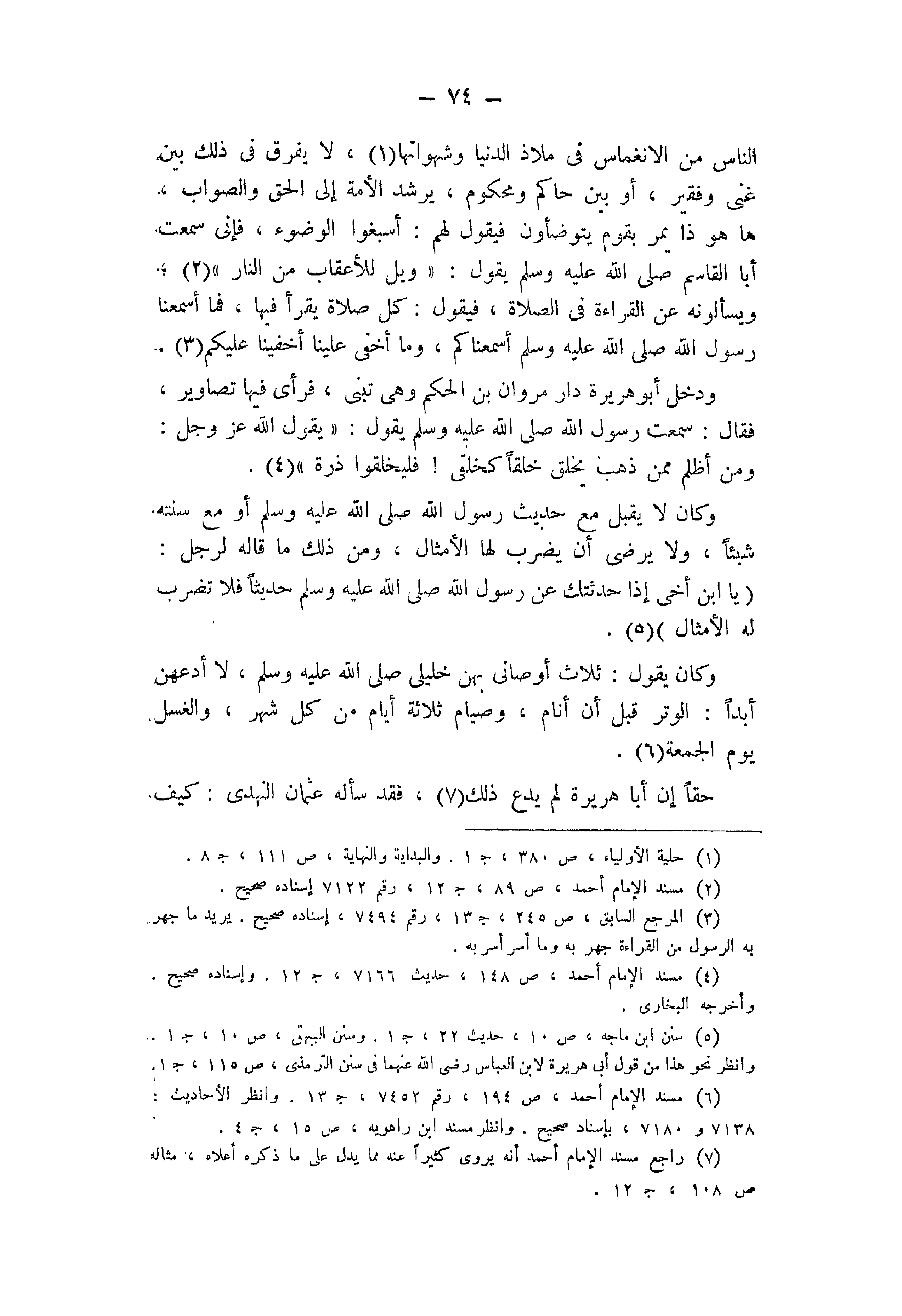 (2) " مسند الإمام أحمد ": ص 89، جـ 12، رقم 7122، إسناده صحيح.