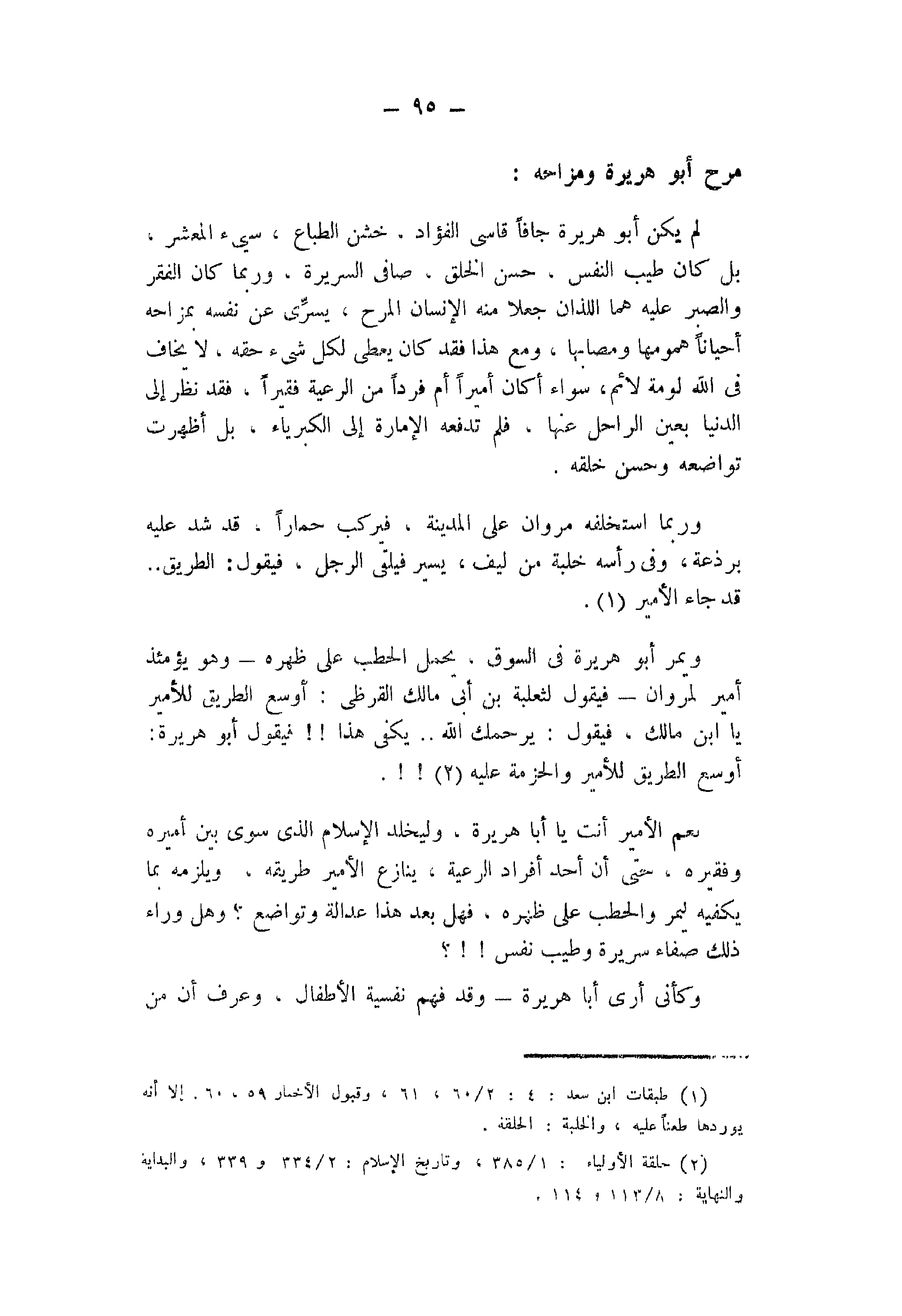 (2) " حلية الأولياء ": ص 385، جـ 1. و " تاريخ الإسلام ": ص 334، جـ 2. و " النهاية والبداية ": ص 113، 114، جـ 8.