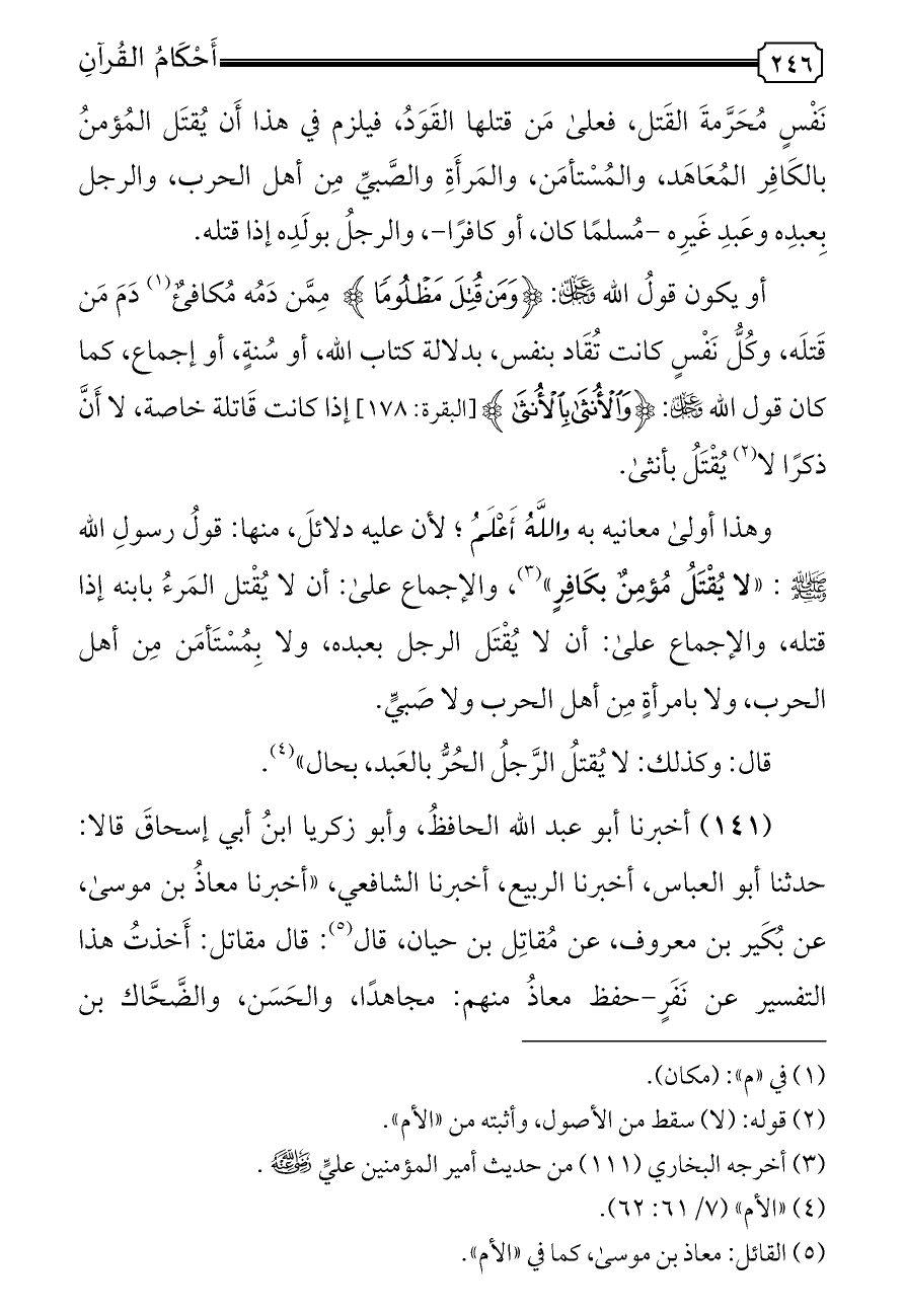 (¬٥) القائل: معاذ بن موسى، كما في «الأم».