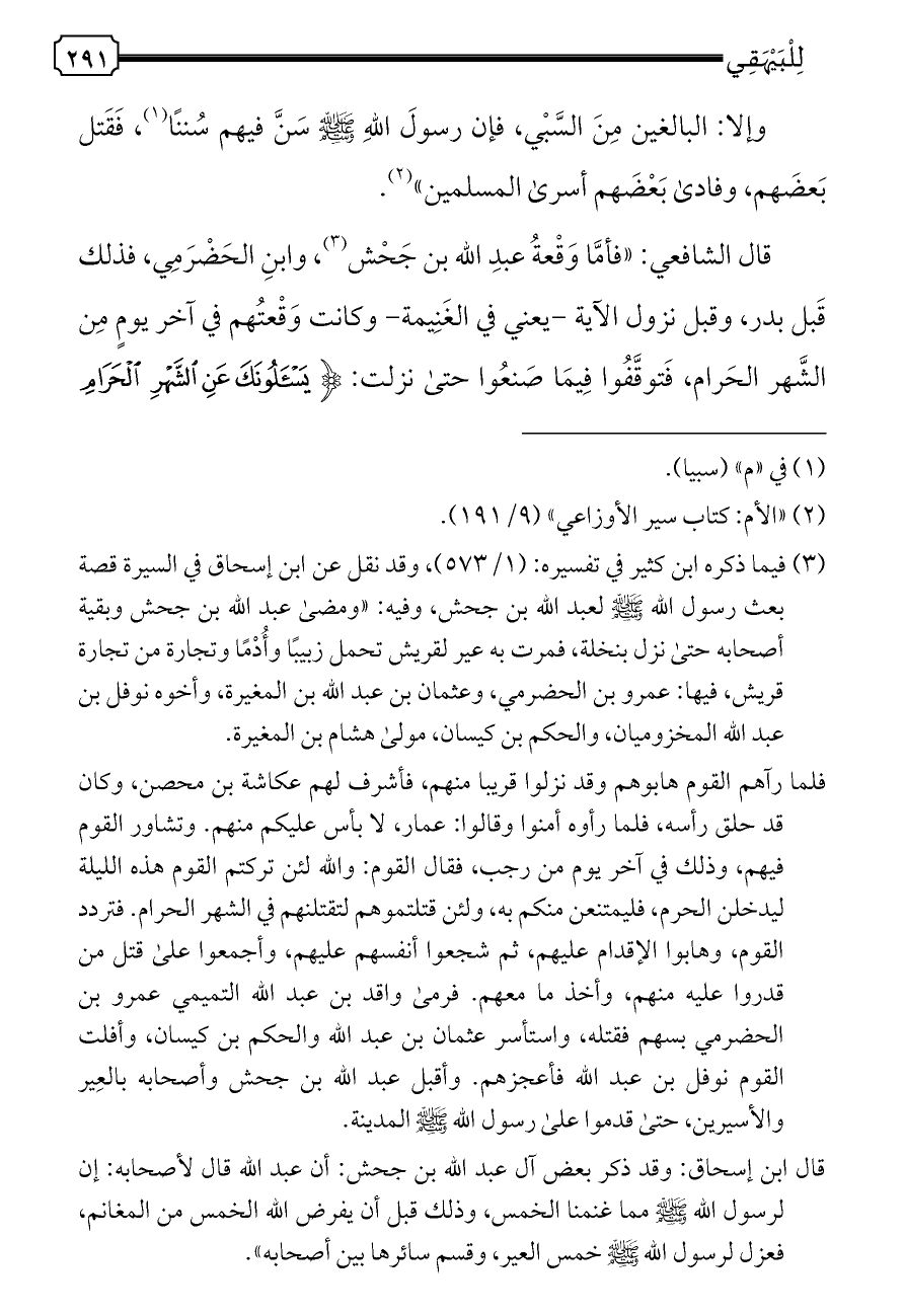 قال الشافعي: «فأمَّا وَقْعةُ عبدِ الله بن جَحْش (¬٣)،