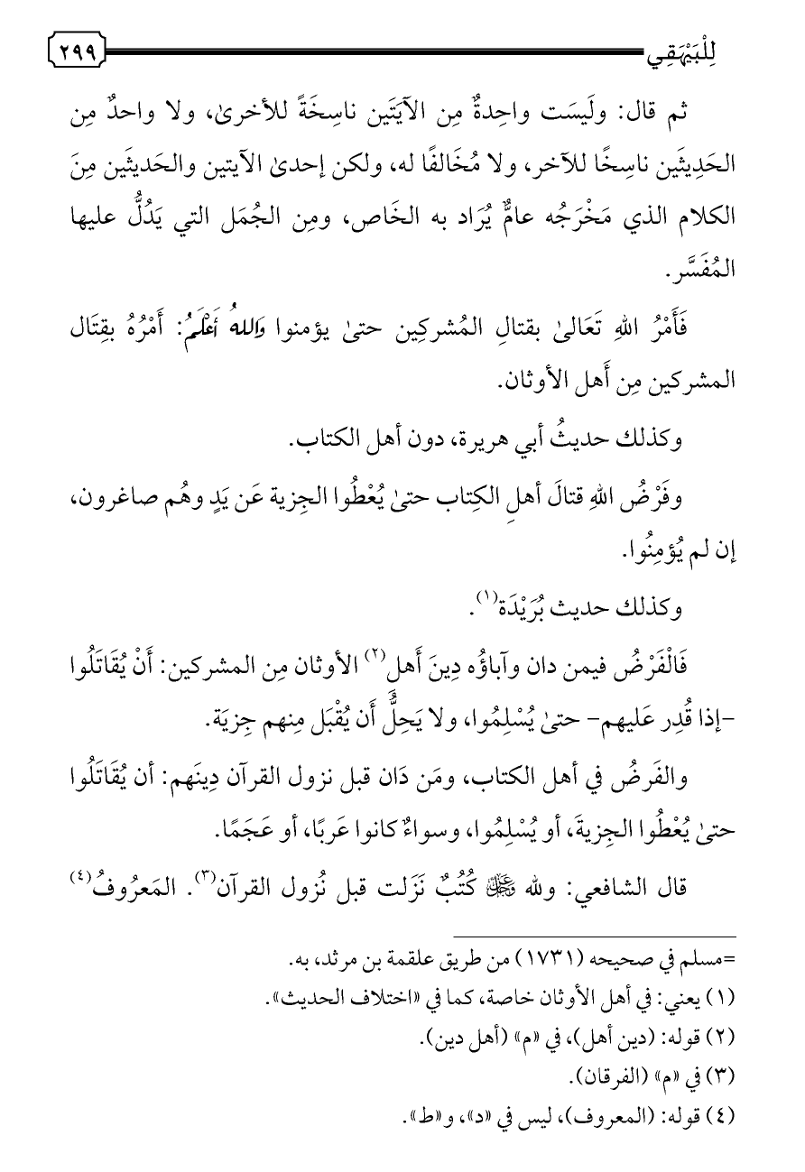 (¬١) يعني: في أهل الأوثان خاصة، كما في «اختلاف الحديث».