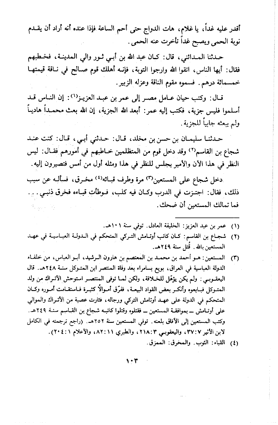 حدثنا المدائين قال: كان عبد الله بن أبي ثور والي المدينة فخطبهم، فقال: أيها الناس اتقوا الله وارجوا التوبة، فإنه أهلك قوم صالح في ناقة قيمتها خمسمائة درهم. فسموه مقوم الناقة وعزله الزبير.