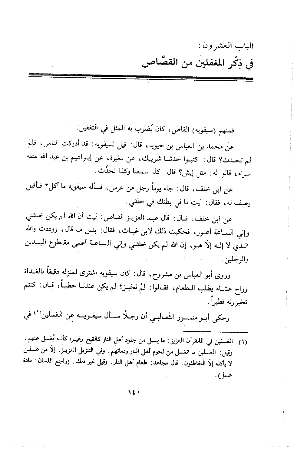 فمنهم سيفويه القاص، كان يضرب به المثل في التغفيل: عن محمد بن العباس بن حيويه قال: قيل لسيفويه قد أدركت الناس فلم لم تحدث؟ قال: اكتبوا، حدثنا شريك عن مغيرة عن إبراهيم بن عبد الله مثله سواء، قالوا له: مثل إيش؟ قال: كذا سمعنا وكذا نحدث.