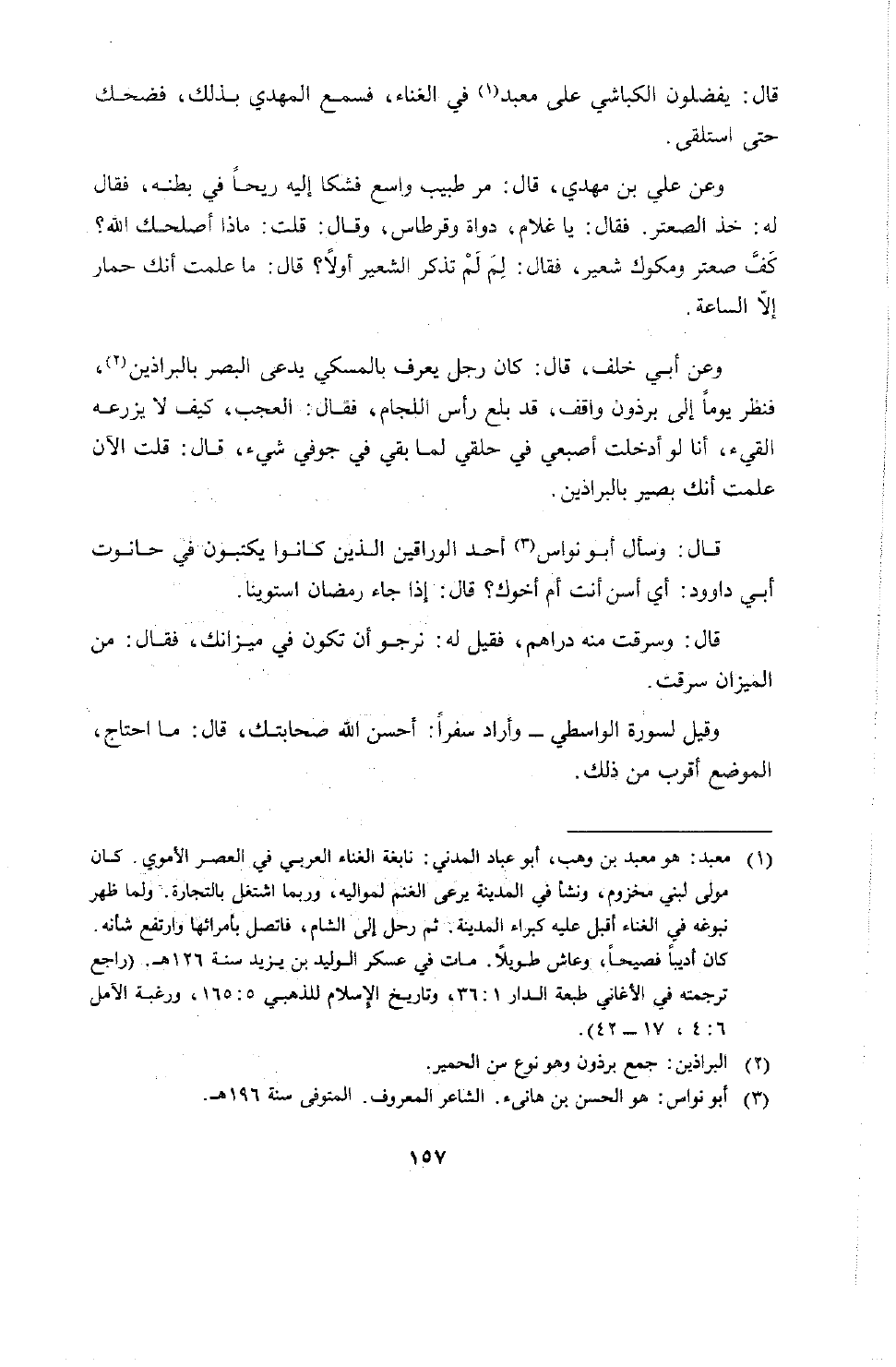 قال: يفضلون الكباشي على معبد في الغناء، فسمع المهدي بذلك فضحك حتى استلقى.