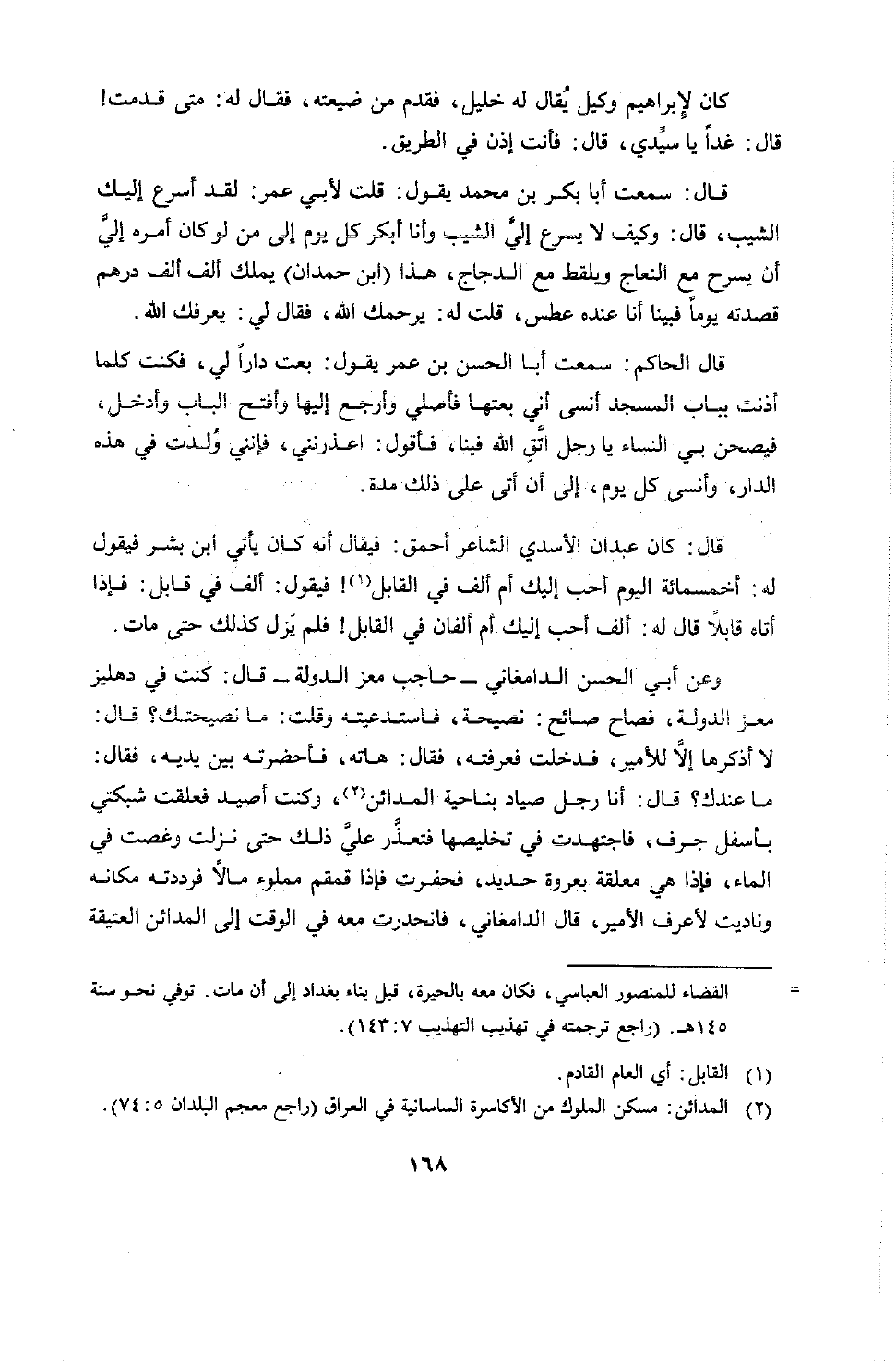 كان لإبراهيم وكيل يقال له: خليل، فقدم من ضيعته، فقال له: متى قدمت! قال: غداً يا سيدي، قال: فأنت إذن في الطريق.