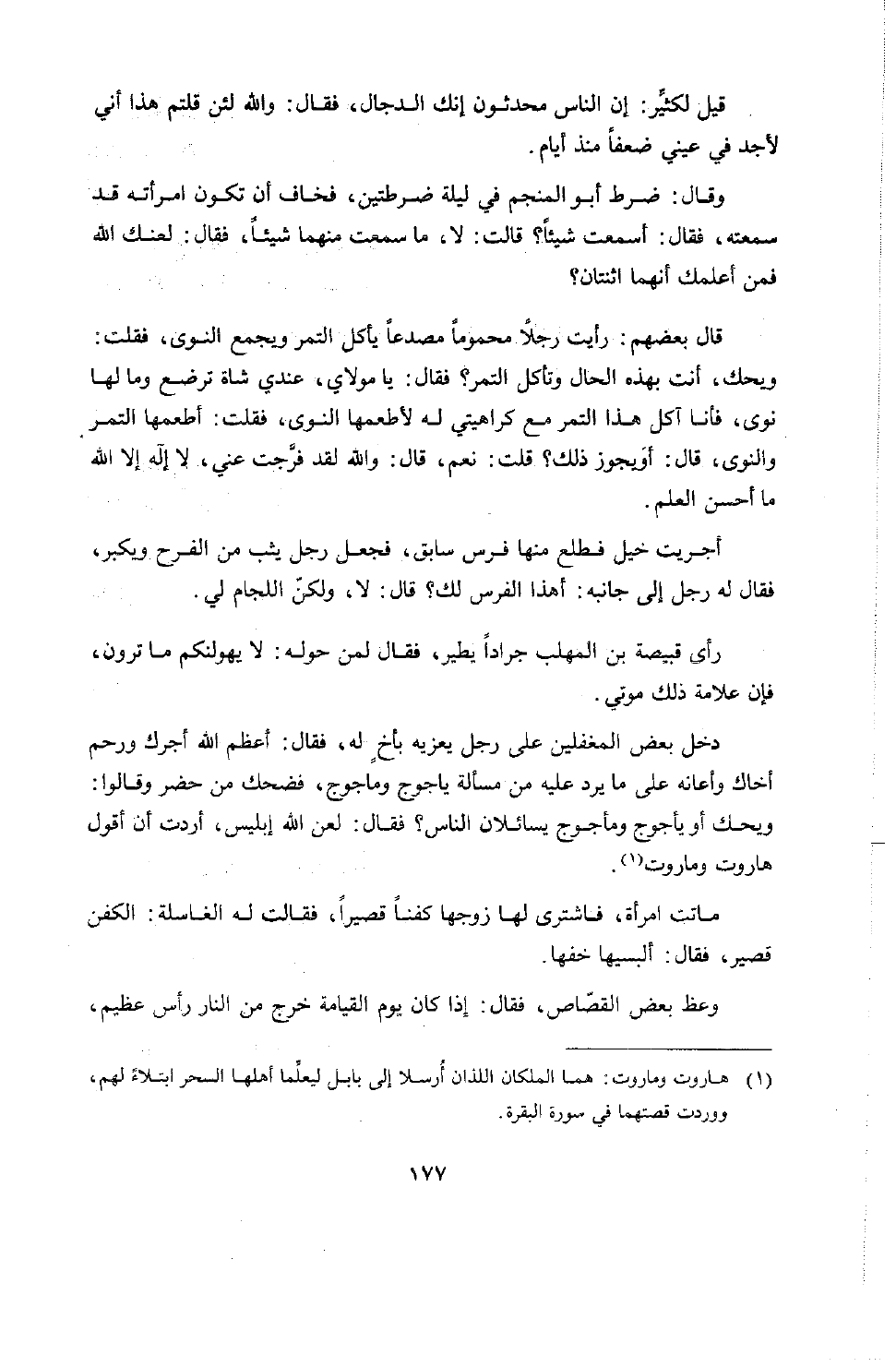 قال بعضهم: رأيت رجلاً محموماً مصدعاً يأكل التمر ويجمع النوى، فقلت: ويحك، أنت بهذه الحال وتأكل التمر؟ فقال: يا مولاي عندي شاة ترضع وما لها نوى فأنا آكل هذا التمر مع كراهيتي له لأطعمها النوى، فقلت: أطعمها التمر والنوى، قال: أو يجوز ذلك! قلت: نعم، قال: والله لقد فرجت عني، لا إله إلا الله ما أحسن العلم.
