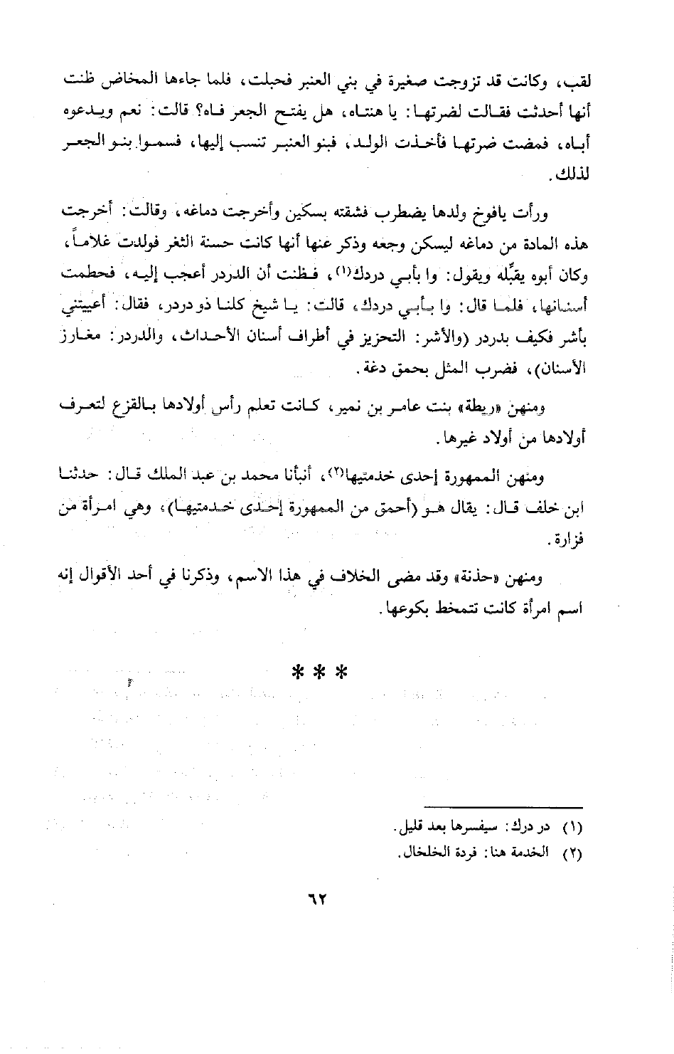 ومنهن حذنة وقد مضى الخلاف في هذا الإسم وذكرنا في أحد الأقوال إنه اسم امرأة كانت تمتخط بكوعها.