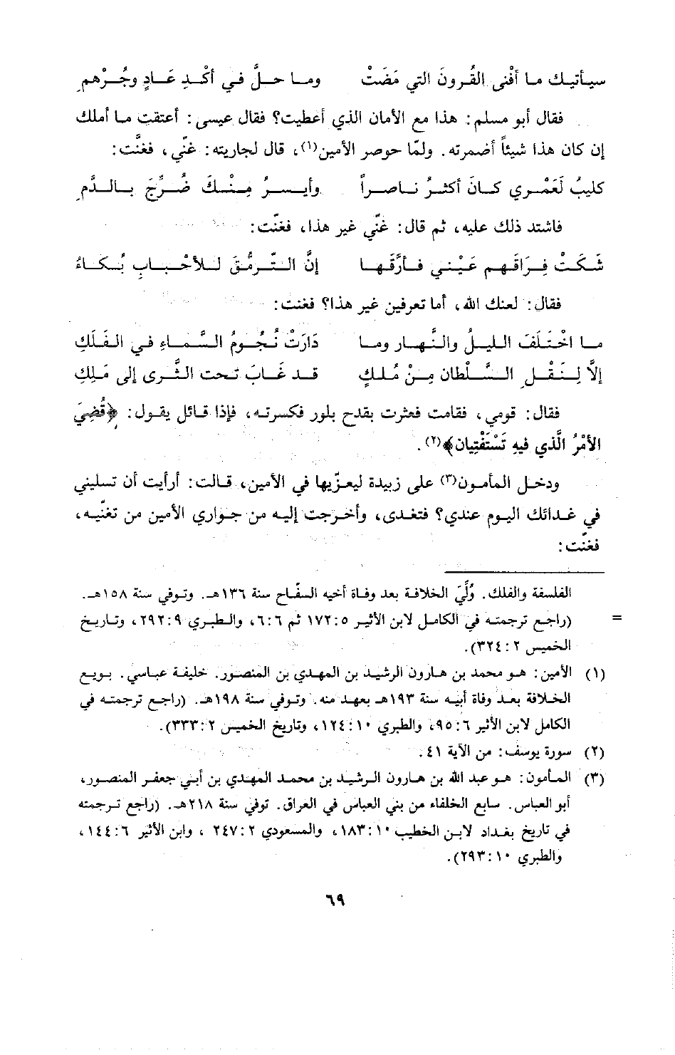 ولما حوصر الأمين قال لجاريته: غني، فغنت الطويل: