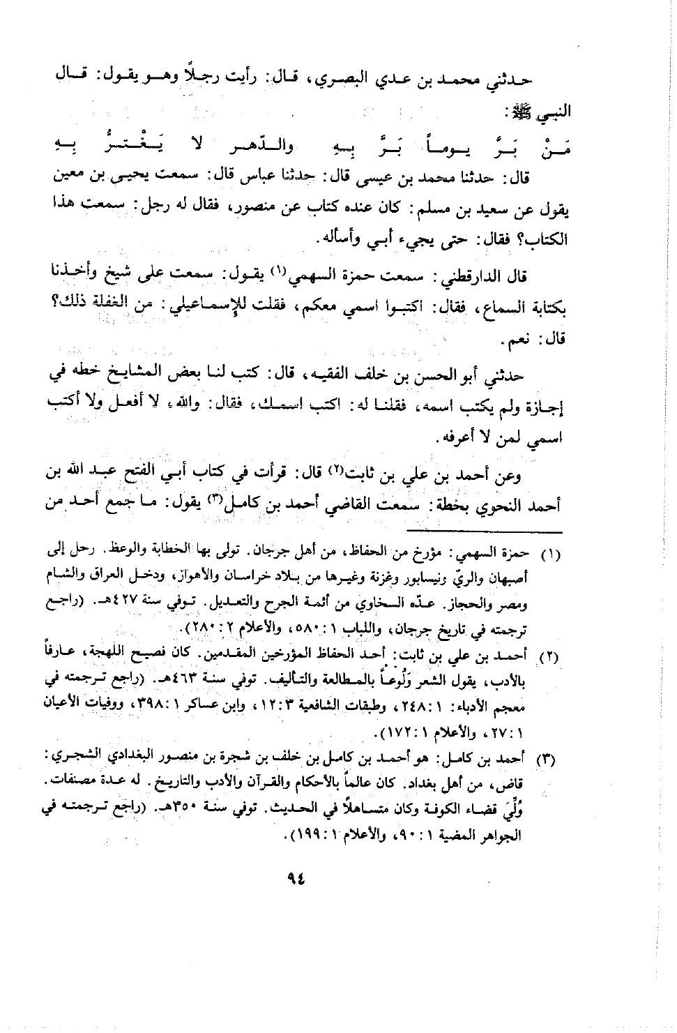 قال الدراقطني: سمعت حمزة السهمي يقول: سمعت على شيخ وأخذنا بكتابة السماع، فقال: اكتبوا اسمي معكم. فقلت للإسماعيلي: من الغفلة ذلك؟ قال: نعم..
